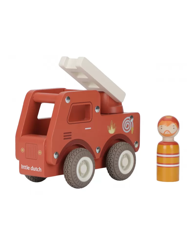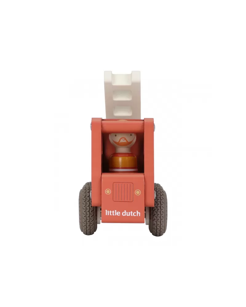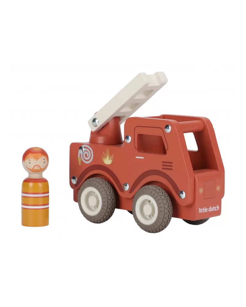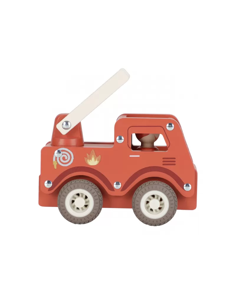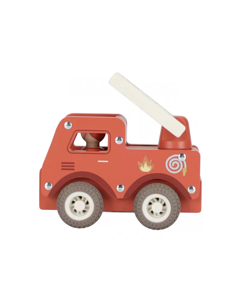 S tímto dřevěným hasičským autem budete vždy připraveni vyrazit do akce! Vozidlo je vybaveno výsuvným žebříkem a odvážným hasičem v podobě dřevěné figurky. Díky robustní konstrukci a gumovým pneumatikám je jízda plynulá a bezpečná na každém povrchu.