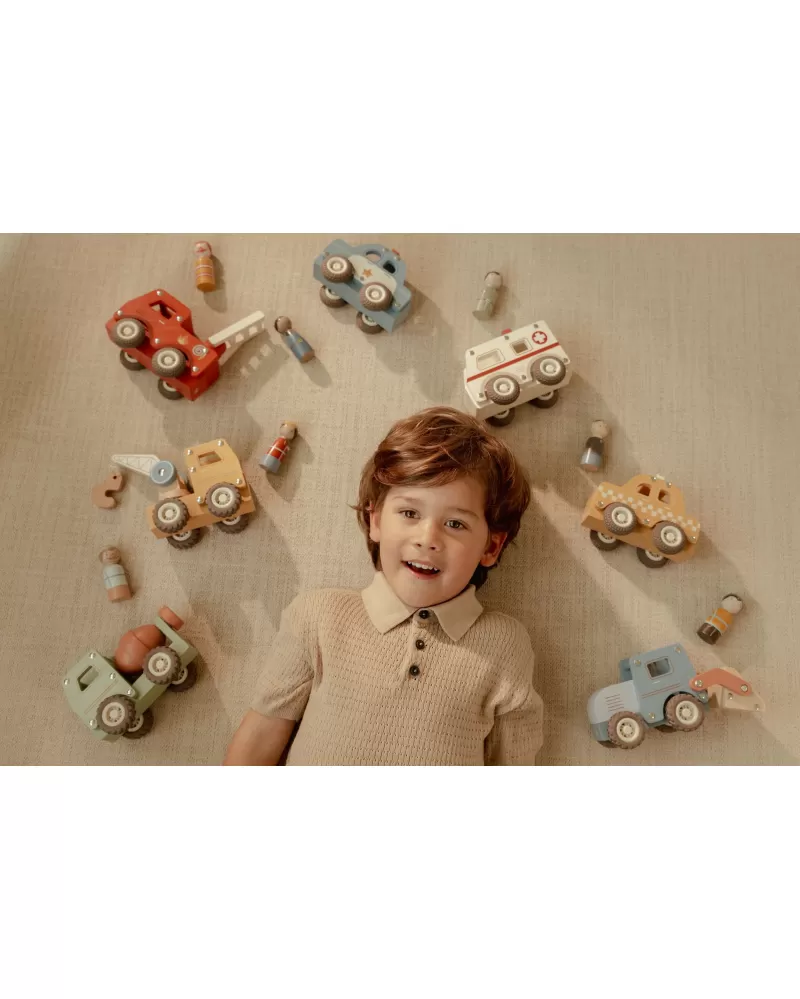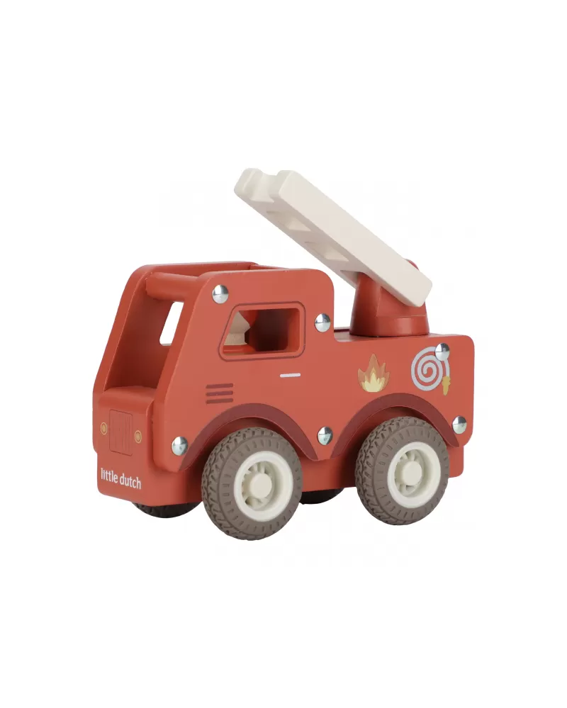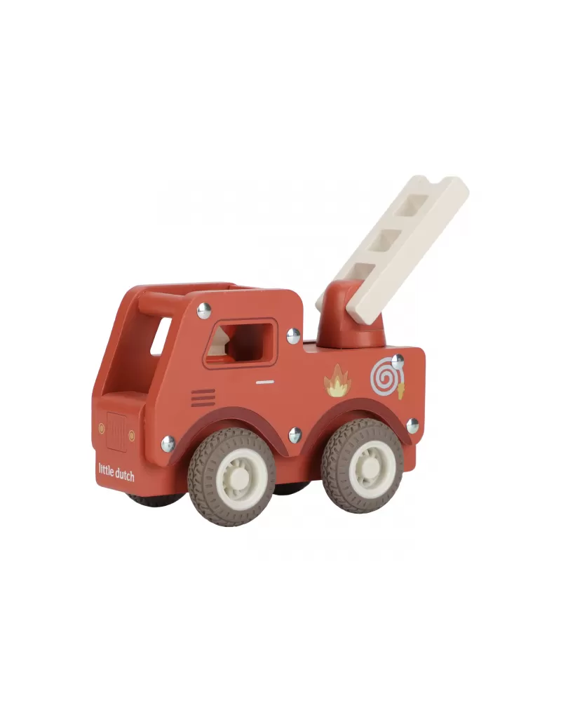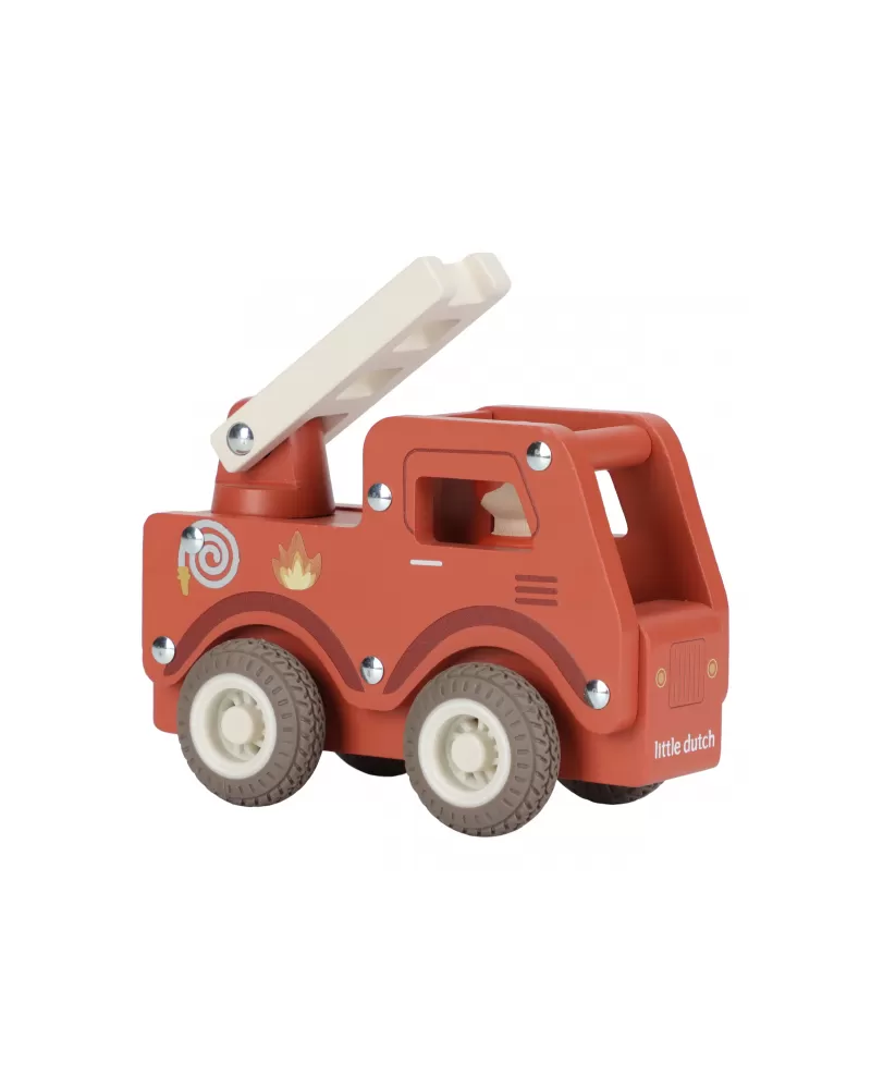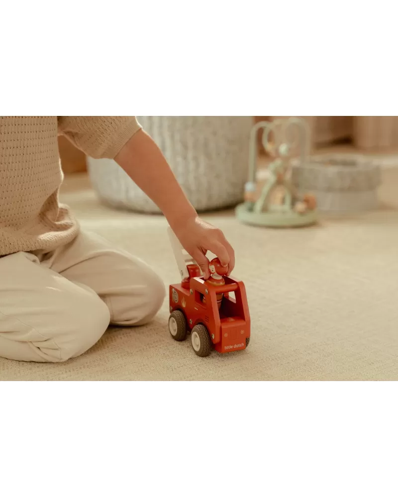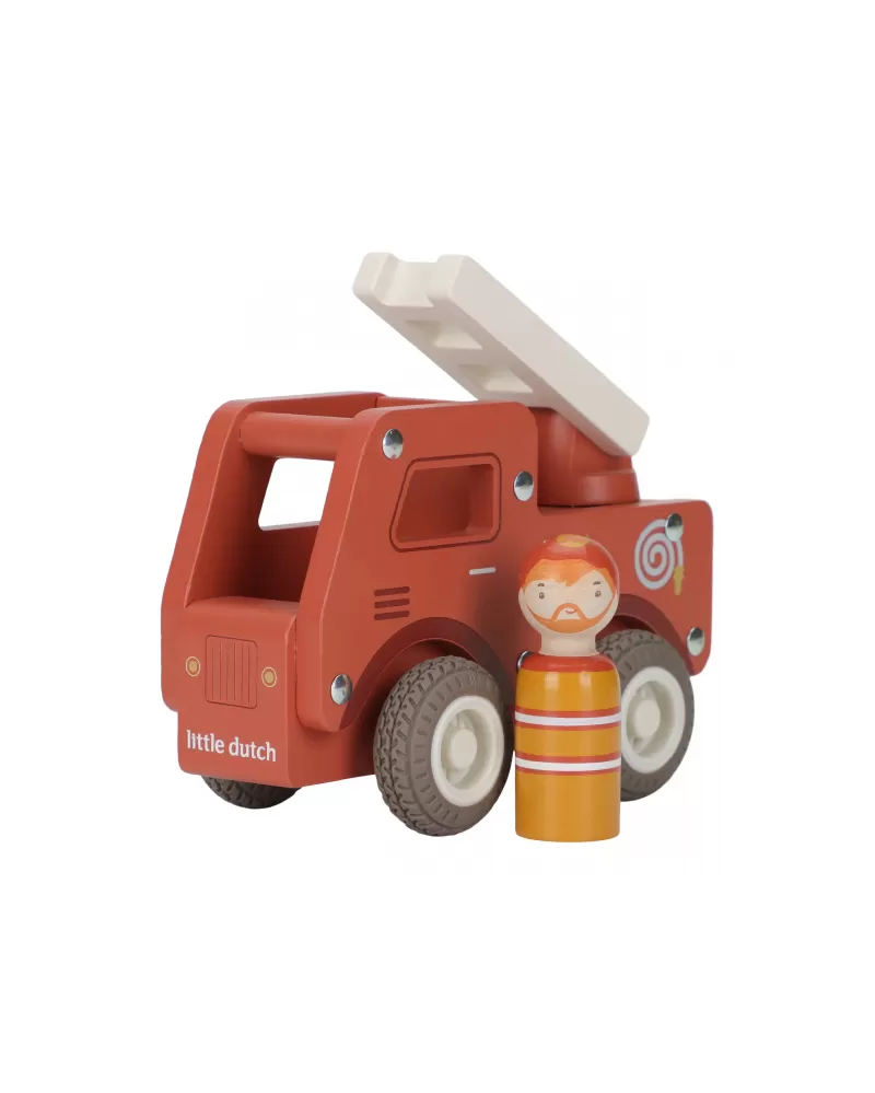 S tímto dřevěným hasičským autem budete vždy připraveni vyrazit do akce! Vozidlo je vybaveno výsuvným žebříkem a odvážným hasičem v podobě dřevěné figurky. Díky robustní konstrukci a gumovým pneumatikám je jízda plynulá a bezpečná na každém povrchu.