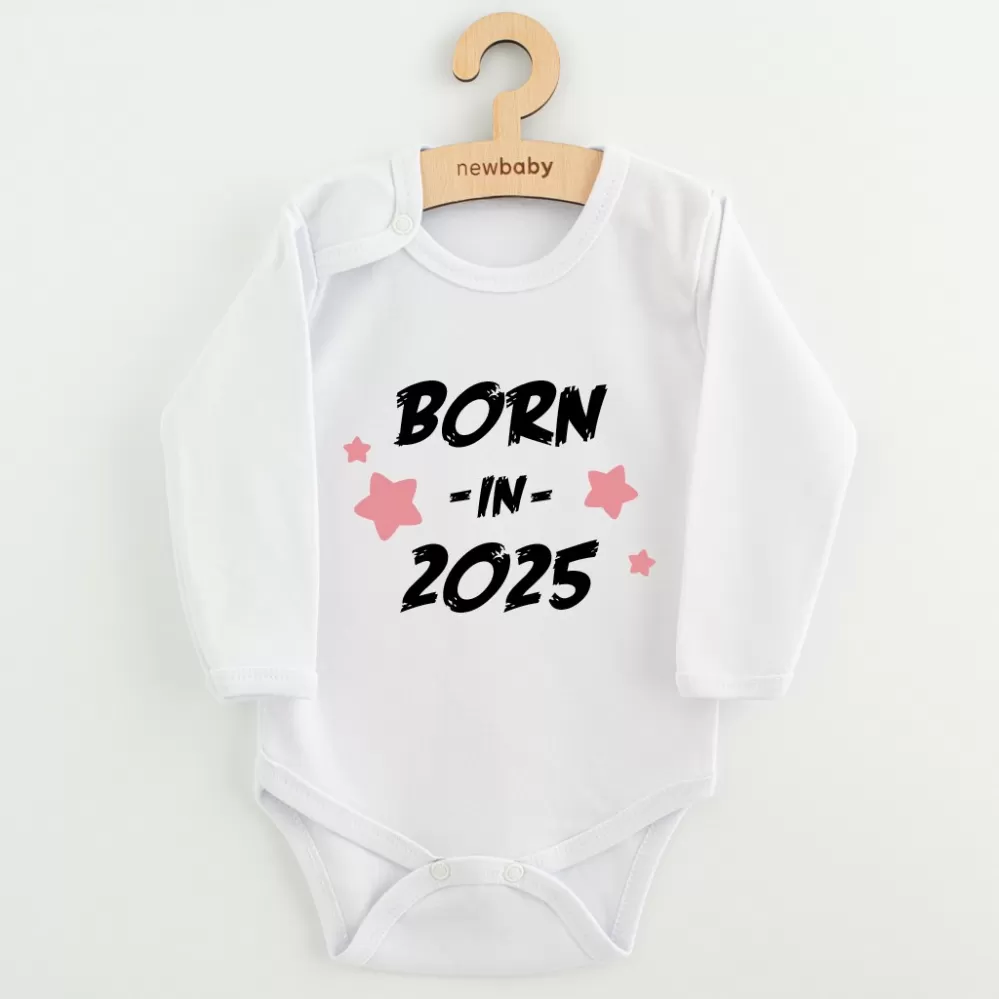 New Baby Dětské body s potiskem BORN IN 2025 pink