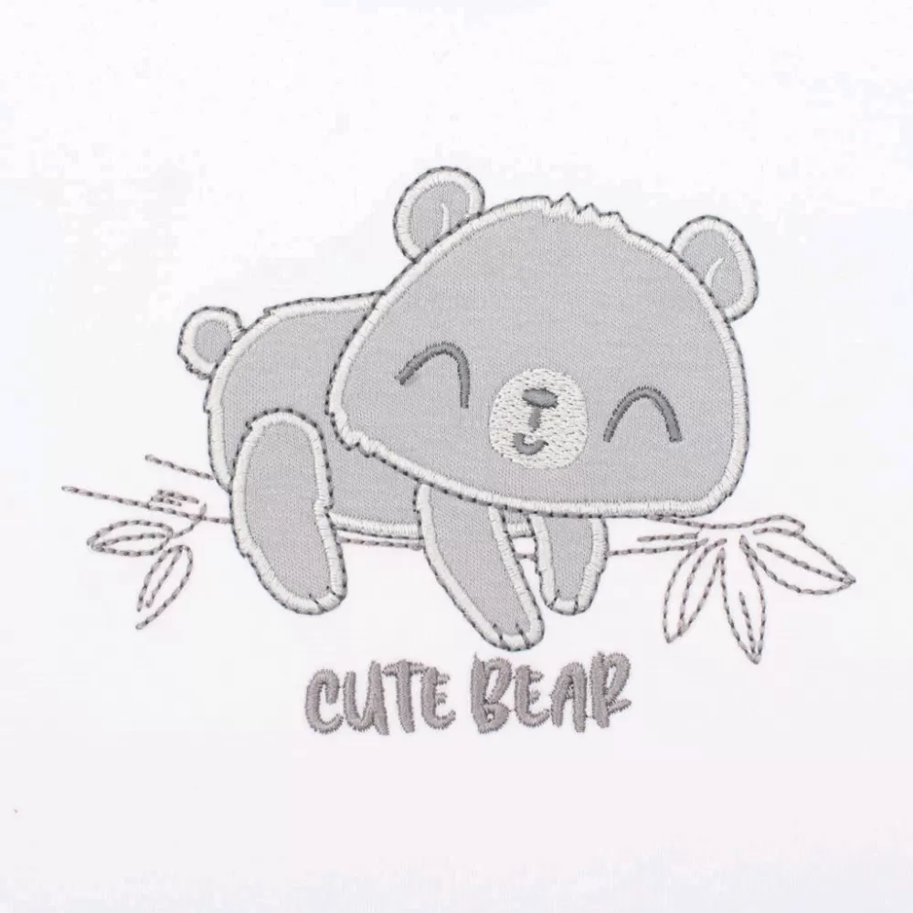 Kojenecké body s dlouhým rukávem české značky New Baby Cute Bear. Body zdobí vyšitý obrázek medvídka. Obrázek je podlepený látkou proti poškrábání. Zapínání na cvočky na ramínku a mezi nožičkama. Body má okolo krčku, nožiček a ručiček lemování. Složení: 100% bavlna.