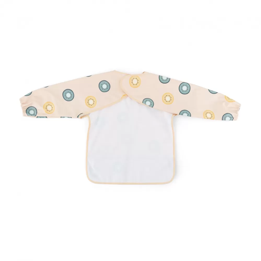 Pohodlný, nepromokavý bryndák s dlouhým rukávem je vyroben z rychleschnoucího, bezpečného PU materiálu, zcela bez PVC a ftalátů. Přední kapsa na drobky zajistí pořádek a pohodlí při krmení a dlouhé rukávy s gumičkou chrání oblečení před zašpiněním a namočením. Bryndák je velmi jemný na dotek a zapíná se na měkký suchý zip. Lze jej používat nejen při jídle, ale také při výtvarných pracích. Chcete-li jej udržet v čistotě, po použití jej jednoduše otřete vlhkým hadříkem.