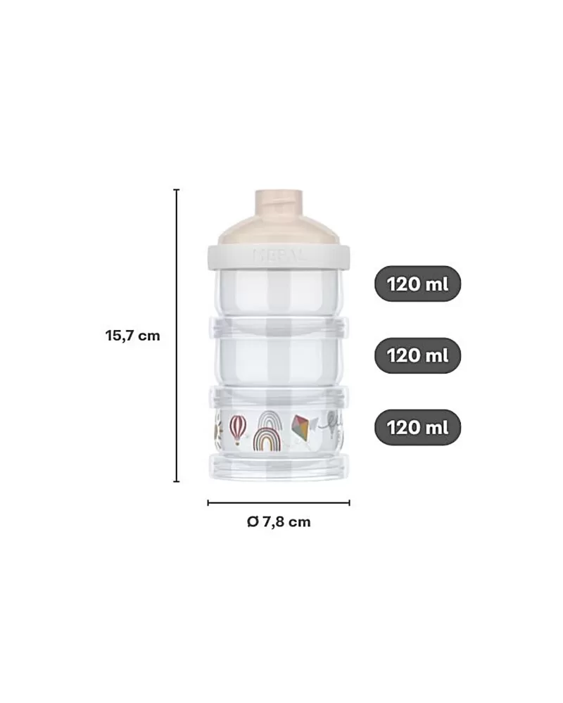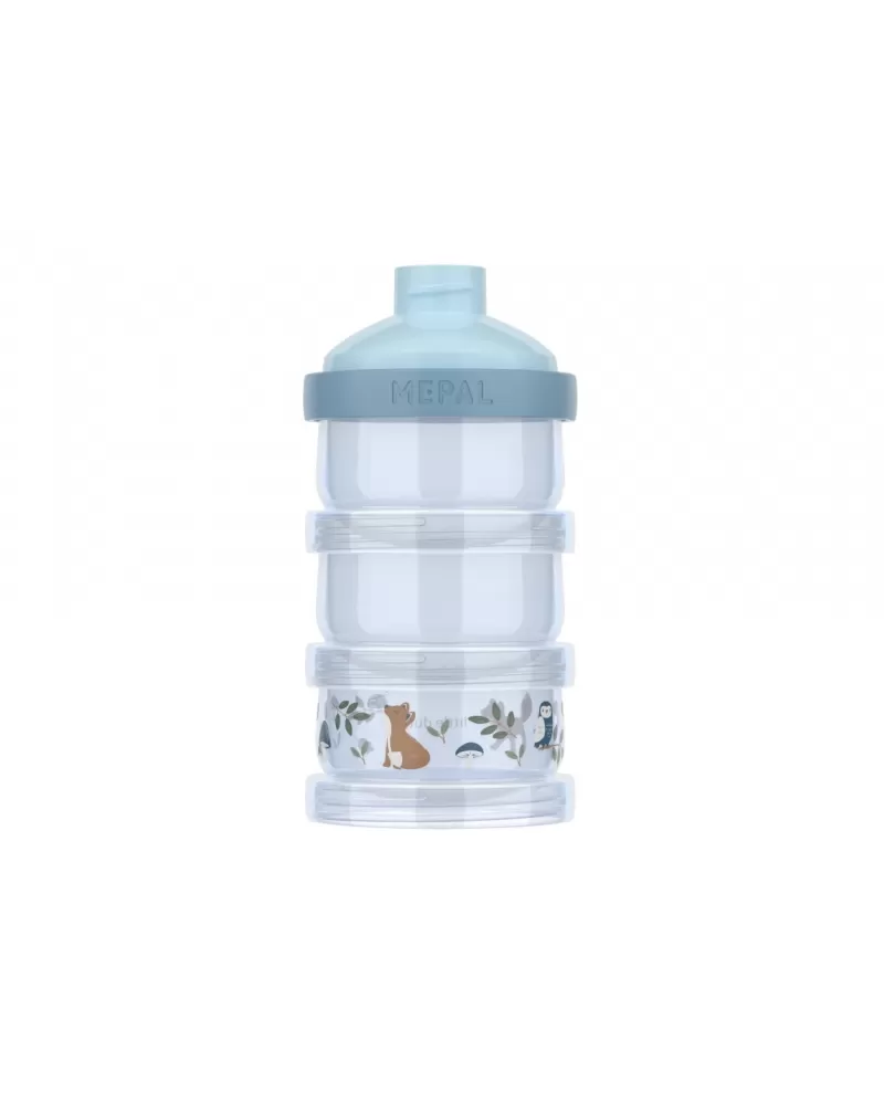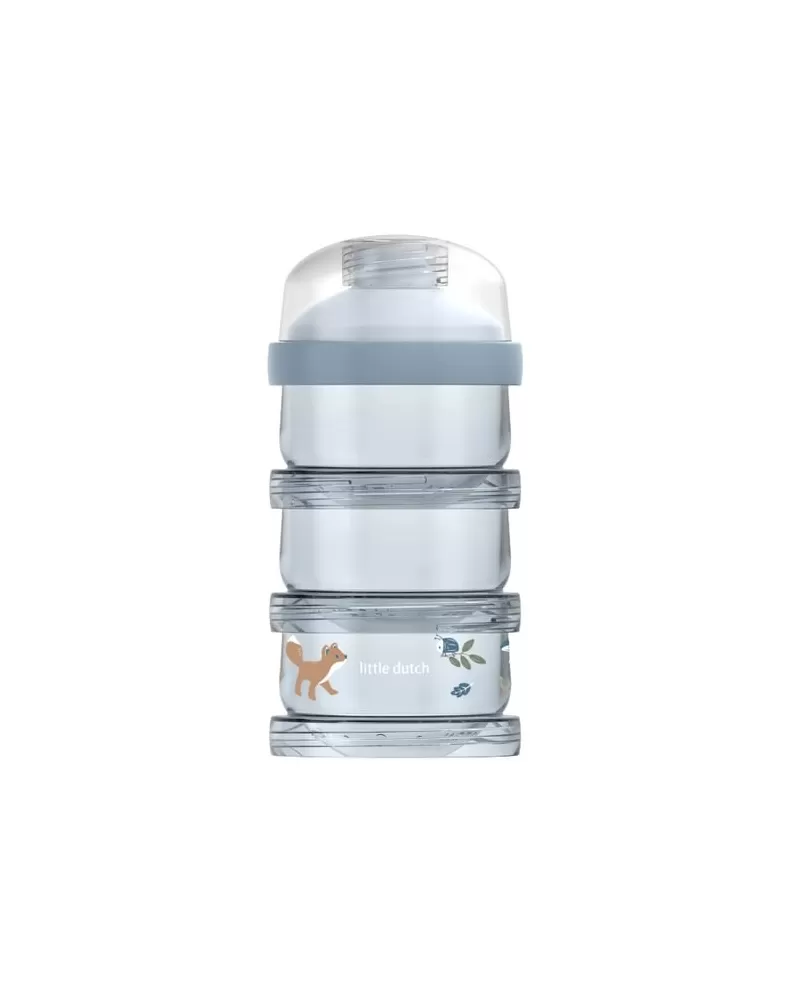 Třídílná nádoba na sušené mléko Little Dutch Forest Friends nabízí jednoduchý a hygienický způsob přípravy kojeneckého mléka doma na cestách. Nádoba obsahuje tři stohovatelné kelímky, které jsou jednotlivě uzavřeny šroubovacími víčky. Praktické nasýpací víčko nahoře usnadňuje dávkování sušeného mléka do lahve.