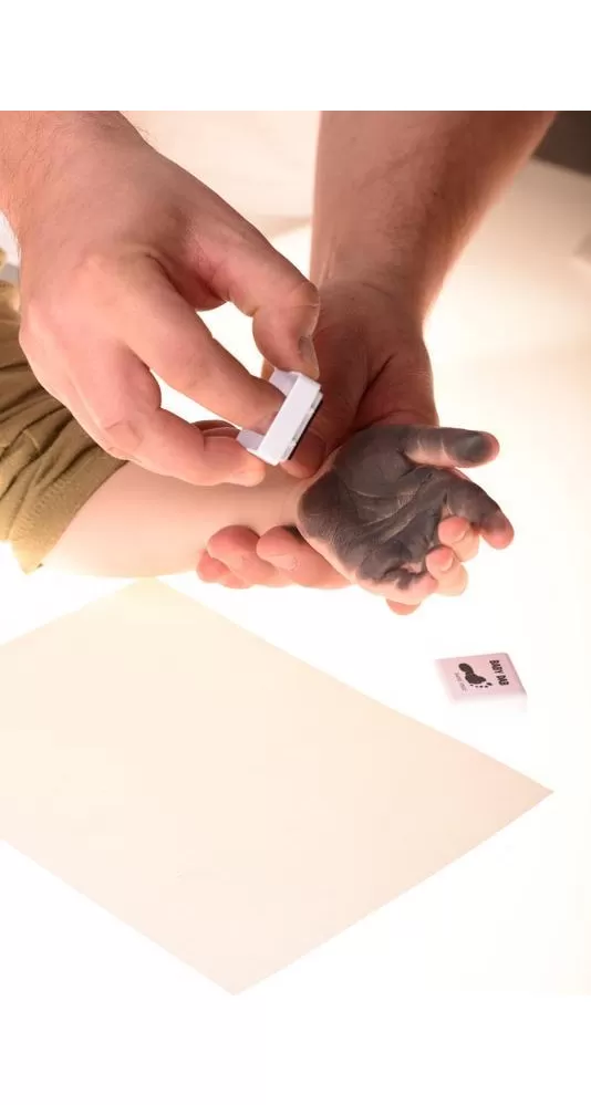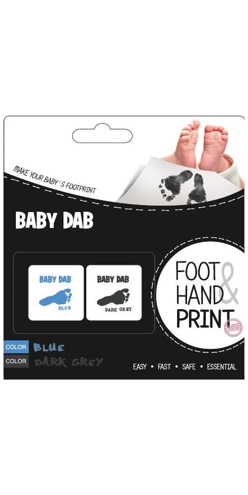 BABY DAB je speciální barva s aplikátorem na otisky dětských ručiček a nožiček do deníčků, památníčků atd. S barvou BABY DAB získáte rychle a jednoduše perfektní otisk Vašeho dítěte vykreslený do nejmenších detailů. Naše barva splňuje veškeré náročné požadavky kladené na výrobky pro děti do 3 let a je bezpečná i pro pokožku novorozence. Barva vystačí cca na 20 otisků (dle věku dítěte).