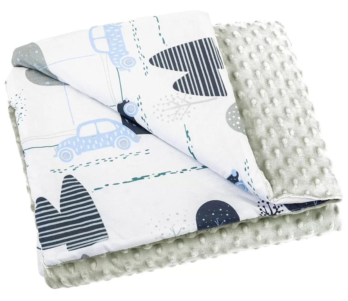 Dětská luxusní oboustranná deka vyrobena z jedné strany ze 100% bavlny a z druhé z jemného, hřejivého a luxusního materiálu MINKY. Měkoučká deka je pro větší pohodlí s výplní z antialergického polyesterového vlákna.