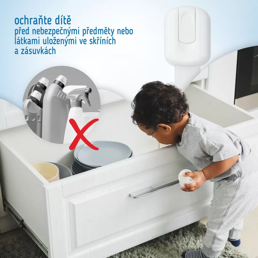 Zámky účinné brání před nechtěným otevřením zásuvek a jiného vybavení a zajišťují tak bezpečnost vašich dětí. Bezpečnostní zámky jsou vyrobeny z vysoce kvalitních materiálů, které zajišťují dlouhou životnost, jejich instalace a použití je snadné pro dospělého člověka, ale obtížné pro děti.