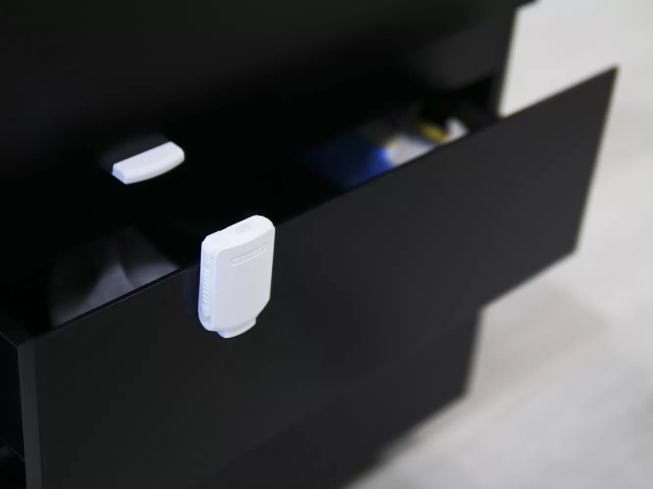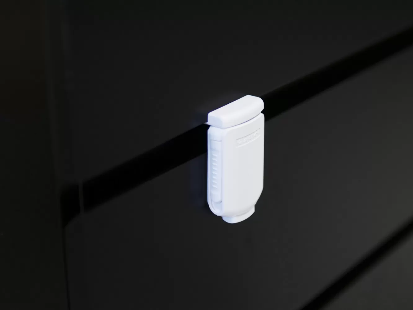 Praktický zámek umožňuje uzamknout zásuvku a zabránit tak dětem dostat se k jejímu obsahu. Lze použít na všechny typy skříněk a zásuvek. Snadná instalace pomocí lepicí pásky.