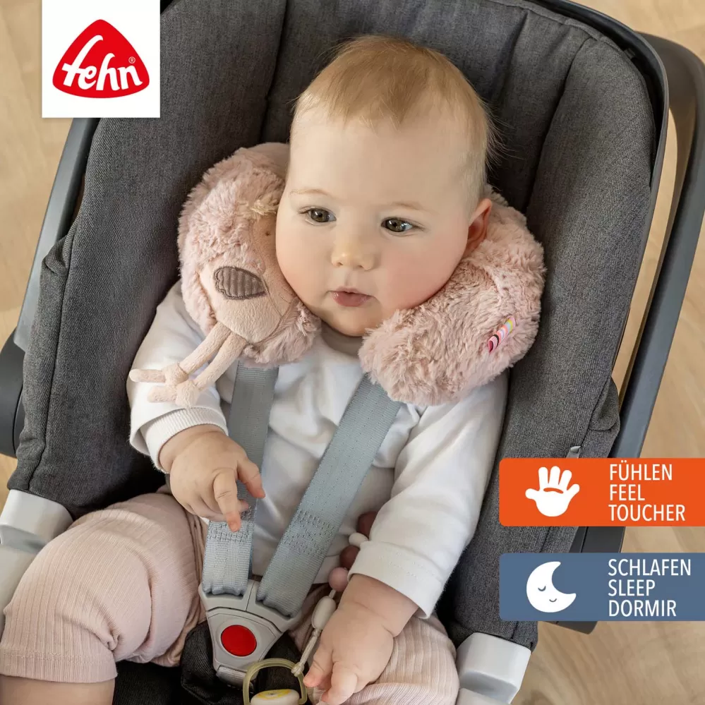 Pro klidný spánek na dlouhých i krátkých cestách autem: polštářek za krk Plameňák z kolekce Lazy, Crazy & Pink zajišťuje bezpečnou oporu hlavičky miminka. Podporuje a ulevuje krční páteři a ramenům. Ergonomický tvar se přizpůsobí krčním křivkám dítěte a polstrované boční části brání tomu, aby hlavička přepadávala dopředu. Miminko je v bezpečném a pohodlném prostředí – ať už v autě, v hluboké korbě nebo v kočárku. Hebký plameňák dělá společnost i během těch nejdelších cest a zabaví i to nejneklidnější děťátko.