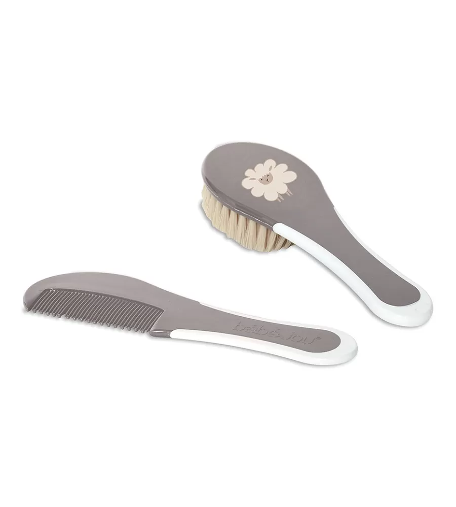 Praktická sada pro péči o vlásky novorozenců a miminek. Na rozdíl od jiných kartáčů vyrobených z tvrdého silonu, kartáč od bébé-jou má měkký přírodní vlas nedráždící jemnou pokožku dětské hlavičky. Hřeben je ergonomicky tvarován a díky zakulaceným špičkám zubů nemůže poškrábat při česání. Snadno se udržuje v čistotě umytím v teplé vodě s trochou mýdla.