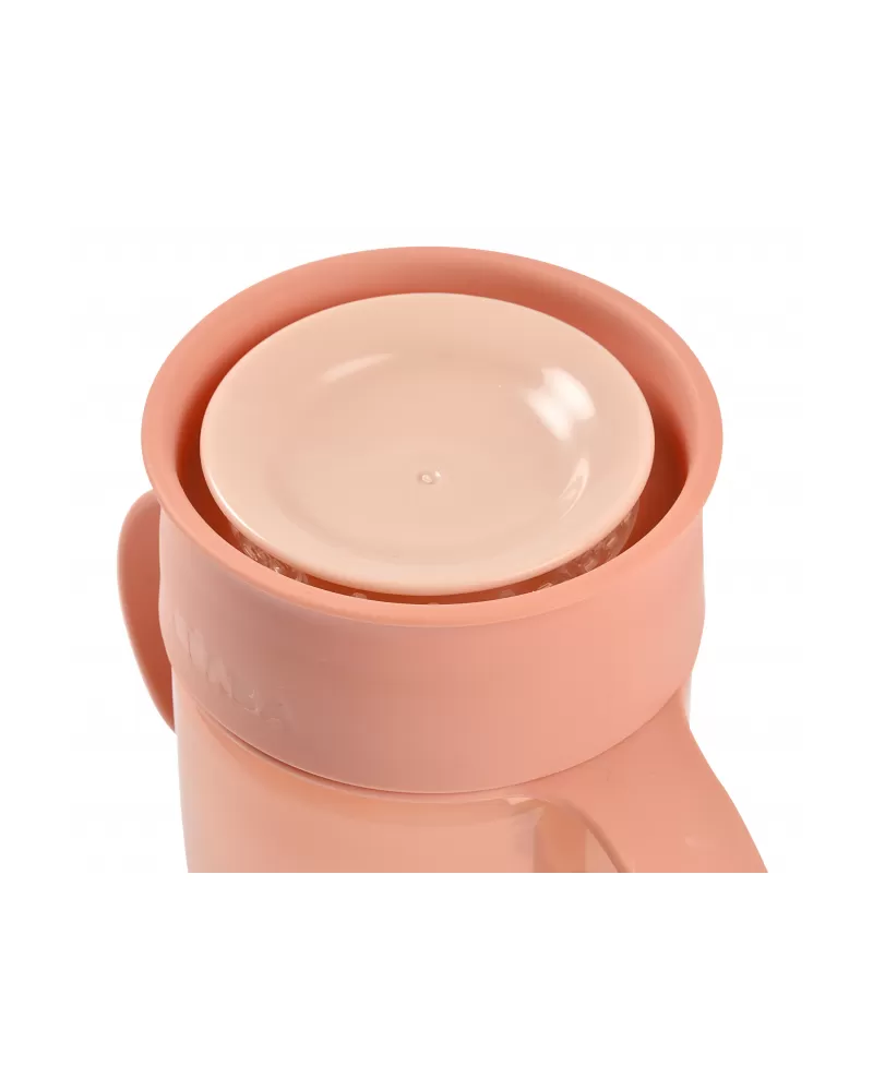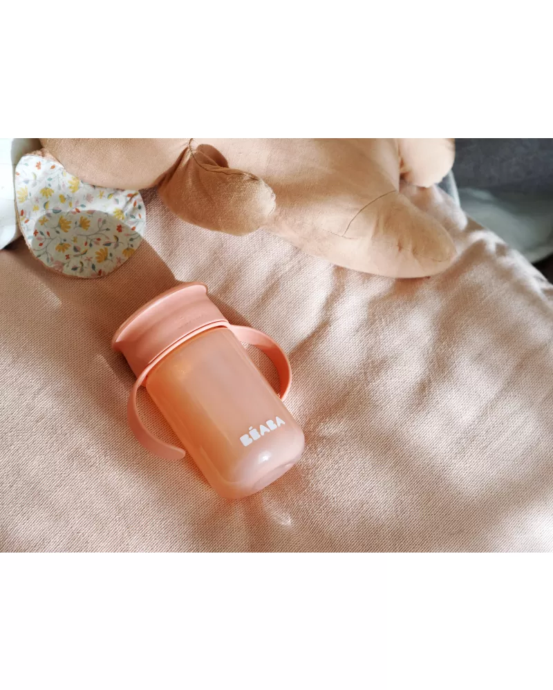 Originální hrnek pro děti, které se učí pít z klasického hrnku. Membrána se systémem 360° umožňuje pít z kteréhokoli místa po obvodu hrnku bez rizika rozlití obsahu - tekutina teče z hrnku pouze tehdy, když dítě přitiskne rty na okraj hrnku. Odnímatelné rukojeti usnadňují držení hrnku. Obsah hrnku při přenášení chrání odnímatelné víčko.