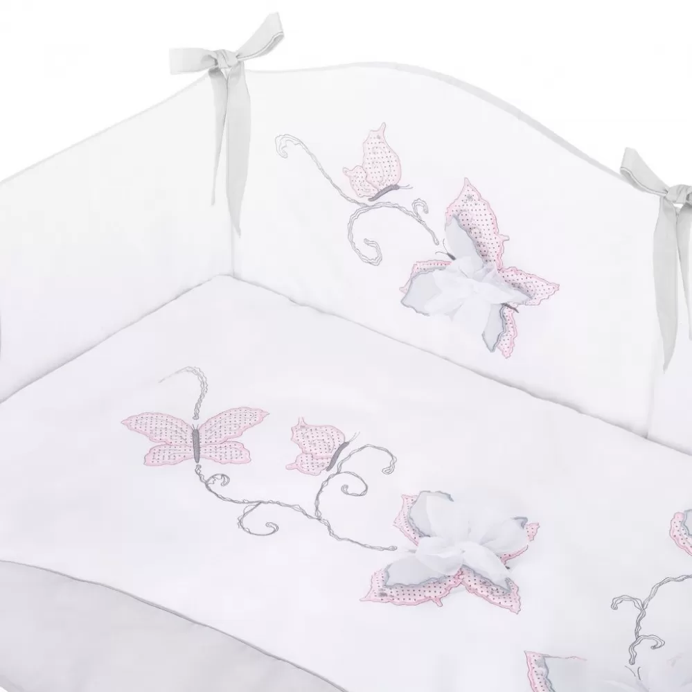 Krásná dětská bavlněná 6-dílná souprava do postýlky Belisima Butterfly pro miminka. Je vyrobena z měkkého, příjemného materiálu. Souprava obsahuje povlečení na polštářek cca 40x60 cm, povlečení na peřinku cca 100x135 cm, mantinel cca 180 cm, výplň...