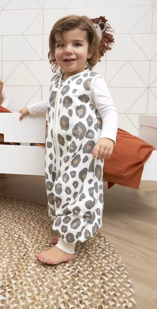 Pohodlný a prodyšný spací vak s otvory pro nožičky Je vyroben ze 100% bavlny.