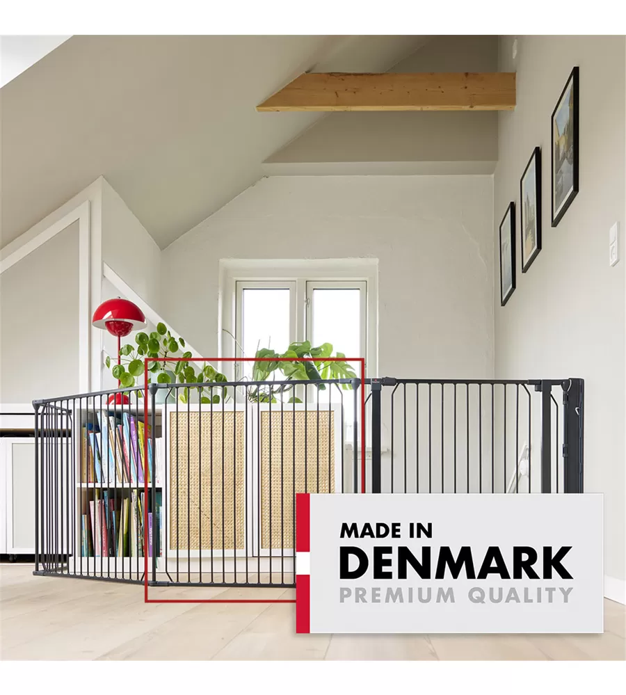 Když k bezpečnostní zabráně BabyDan CombiFit nebo BabyDan Carl přidáte prodloužení BabyDan 72cm, můžete snadno zabezpečit široké a nepravidelné schodiště, dveře nebo krb, případně zábránu použít pro rozdělení místnosti. Můžete přidat tolik prodloužení, kolik potřebujete, a každé prodloužení lze libovolně umístit v konfiguraci bezpečnostní zábrány.