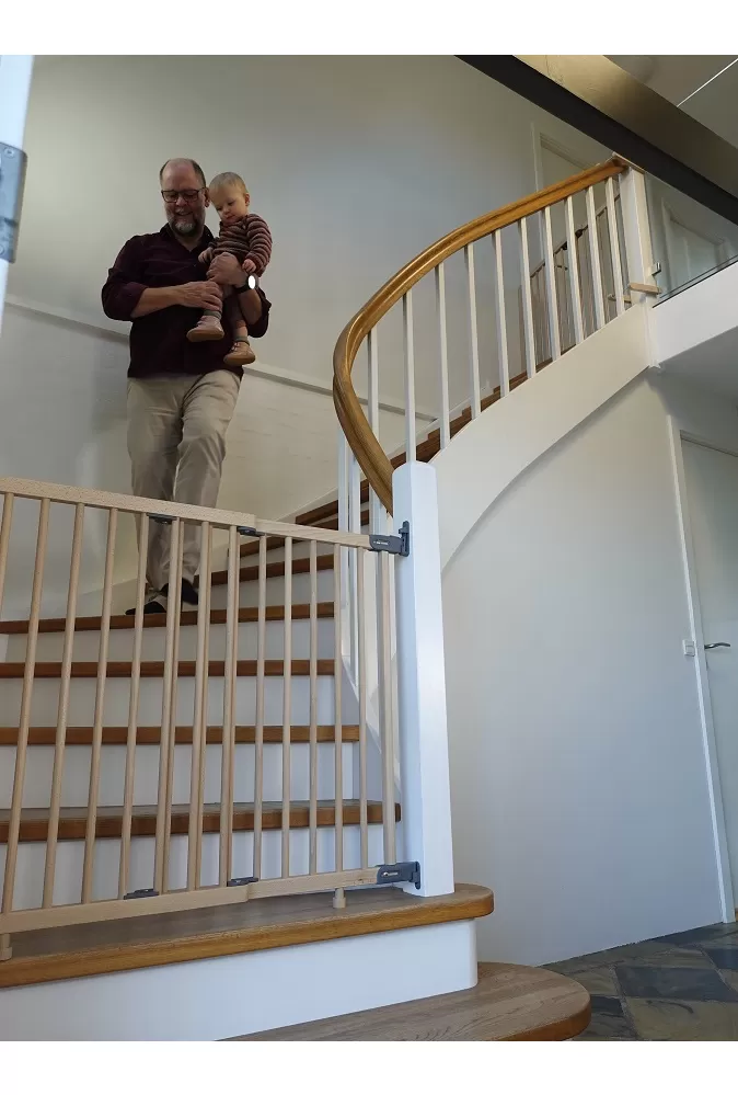 Schodišťová brána BabyDan Mona se bez námahy integruje s lištami pro bezchybnou instalaci, čímž odpadá nutnost kutilských úprav.