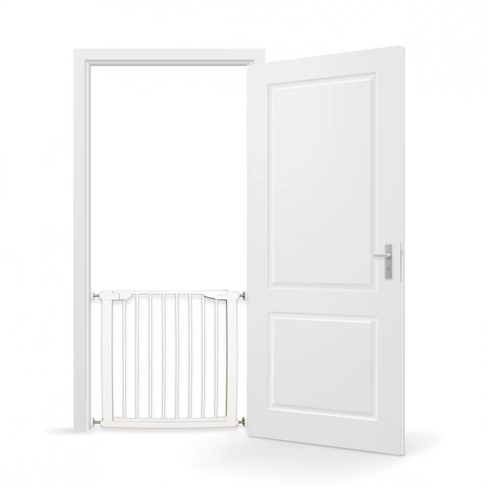 Upínací zábrana Guardino je vhodná pro zajištění většiny standardních dveří. S nastavitelnou délkou lze zajistit průchody a schody o šířce 75 až 81 cm. A pokud by to nestačilo, lze připevnit nástavec vpravo i vlevo (k dispozici nástavce se 7 a 14 cm).