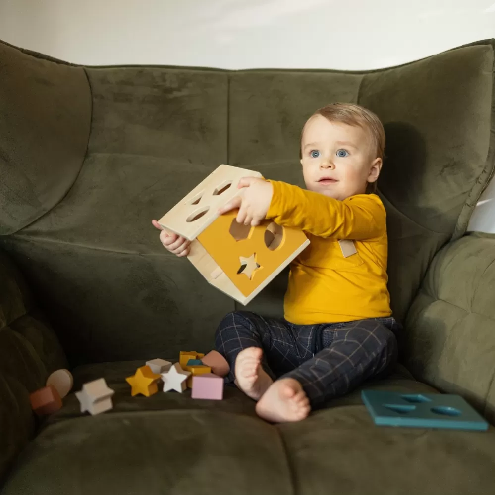 Z jiné planety! Kolekce WOOD OF MARS Kolekce dřevěných hraček WOOD OF MARS je víc než jen sada kostek. Je to jedinečný svět, ve kterém se rozvíjí dětská představivost, motorické schopnosti a kreativita. Tyto hračky z jiného světa vybízejí k objevování nových dimenzí hry, kde každý prvek stimuluje rozvoj a schopnost prostorového myšlení. Každý kousek kolekce je pečlivě navržen tak, aby byl nejen estetický, ale aby rozvíjel také kognitivní schopnosti dětí. Jedná se o jedinečnou kombinaci vzdělávání a krásy, která dětem umožňuje tvořivě zkoumat vesmírná tajemství a rozvíjet neobyčejné schopnosti. Dřevěná třídící hračka GRAVITY rozvíjí manuální dovednosti děťátka, podporuje jemnou motoriku, logické myšlení a učí vztahy příčiny a následku. Není jen pokusem o přiřazení kostky k příslušnému otvoru, ale také podnětem k myšlení a vnímavosti. Rozmanitost tvarů a barev podněcuje dětskou představivost a umožňuje objevovat rozdíly mezi jednotlivými prvky. Souprava obsahuje dřevěnou kostku se čtyřmi stranami pro třídění a 12 barevných kostek různých tvarů, například trojúhelníku, hvězdy, čtverce, kosočtverce nebo kruhu. Když jsou všechny dílky uvnitř třídící kostky, jednoduše vysunete horní kryt, abyste je mohli snadno vyjmout zpět. Děti mohou nejen přiřazovat tvary k otvorům a třídit díly, ale také je používat ke stavbě různých prvků. Hračka je určena pro děti od 1 roku. Souprava obsahuje třídící kostku a 12 barevných dílků. Každý prvek je pečlivě testován, odolný vůči házení a úderům, což zaručuje trvanlivost i během intenzivní hry.