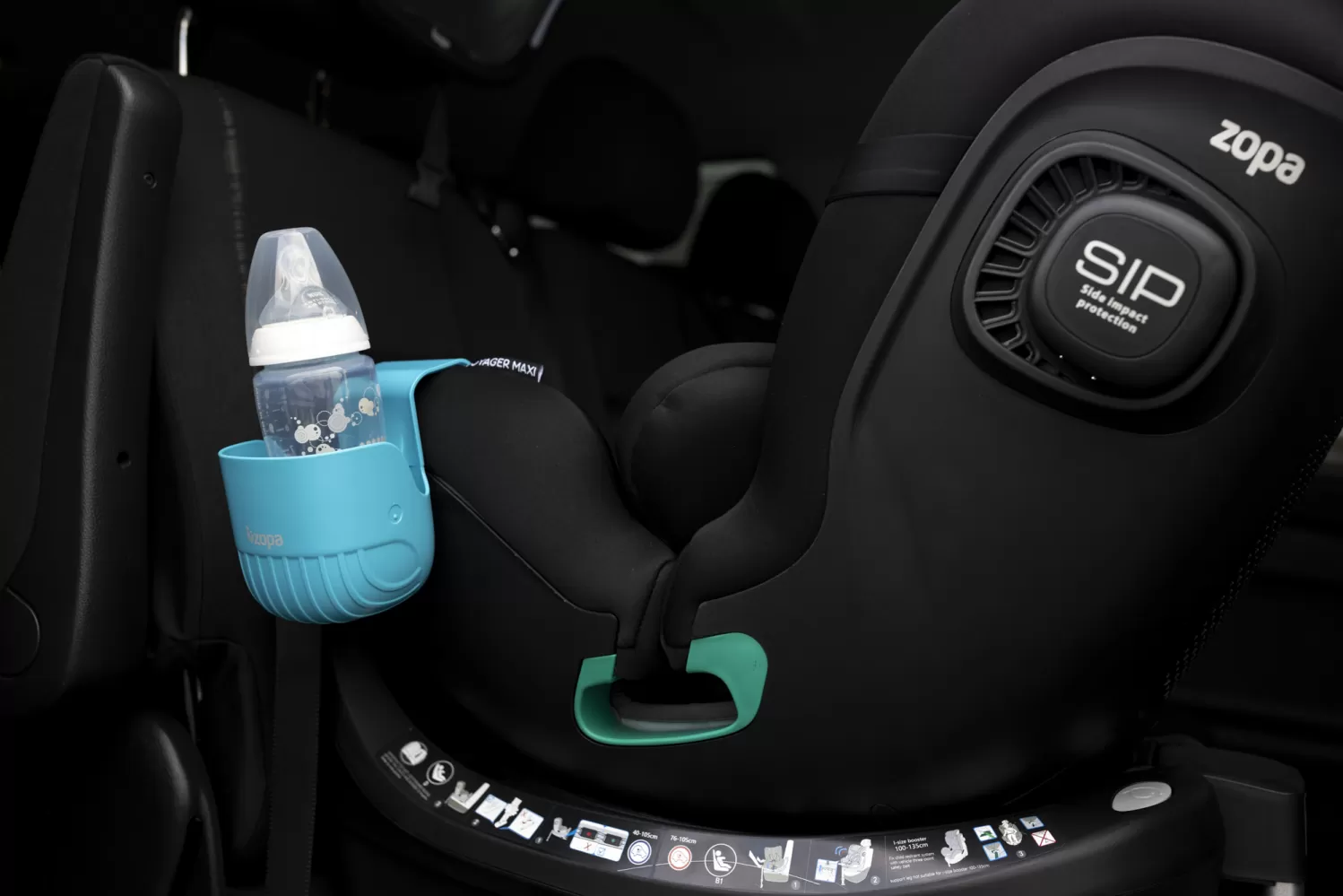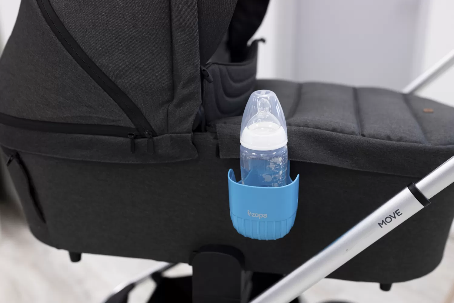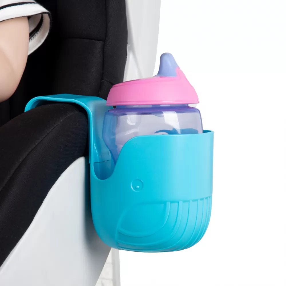 Praktický držák na pití s háčkem. Lze jej zavěsit na kočárek, autosedačku, postýlku i jiná místa (šířka max 4 cm). Do držáku je možné vložit lahvičku s maximálním průměrem 8 cm.