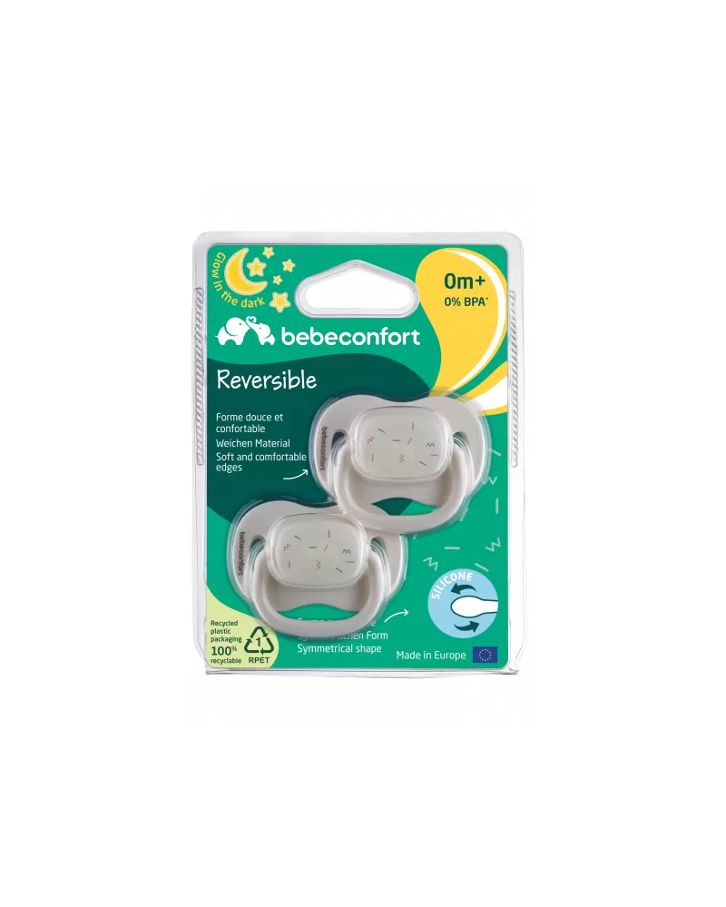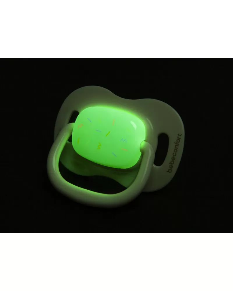 Šidítko se symetrickou savičkou z měkkého silikonu. Vnější část šidítka má otvory pro cirkulaci vzduchu, aby nedošlo k podráždění citlivé pokožky kolem úst. Šidítko ve tmě světélkuje, takže jej snadno najdete i v noci v postýlce.