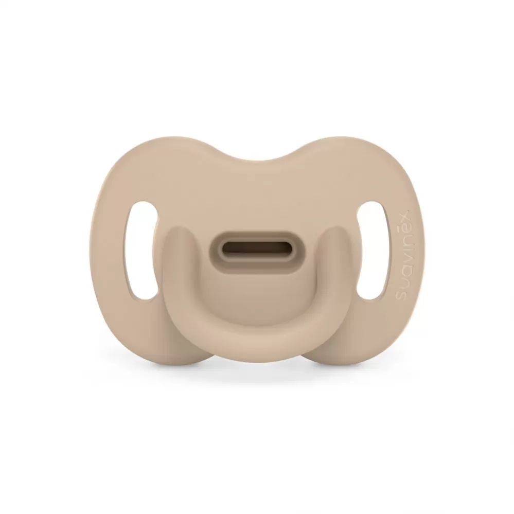 Měkoučký celosilikonový dudlík Colour essence sx pro od značky Suavinex v pastelových barvách - vyroben z jednoho kusu silikonu, s ergonomickým štítkem, který se přirozeně adaptuje s potřebami dětí, bez chuti a bez zápachu. Ponechává jazyku více místa v dutině ústní, aby bylo sání co nejpřirozenější.
