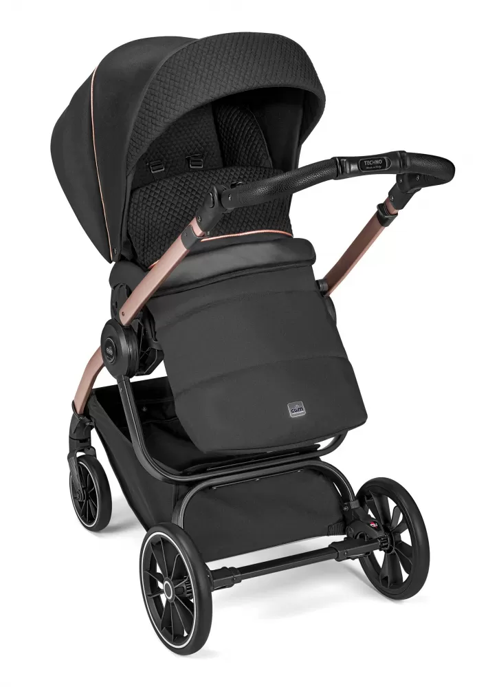 Podvozek Techno má odpruženou konstrukci a praktické nástavby, které se snadno dají nasadit v obou směrech. Pro vaši komfortní jízdu jsou velká zadní a přední kola s aretací odpružená. Navíc, všechna mají odlehčené provedení – jsou vyrobena z materiálu EVA. Jejich velkou výhodou je, že se nedají propíchnout. Na cestách se proto můžete na ně stoprocentně spolehnout.