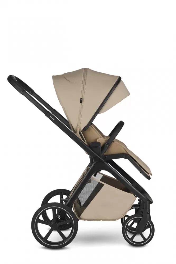 - Nastavitelná výška sedáku díky integrovanému výškovému adaptéru, možnost nastavení výšky na třech úrovních a korby na kočárku