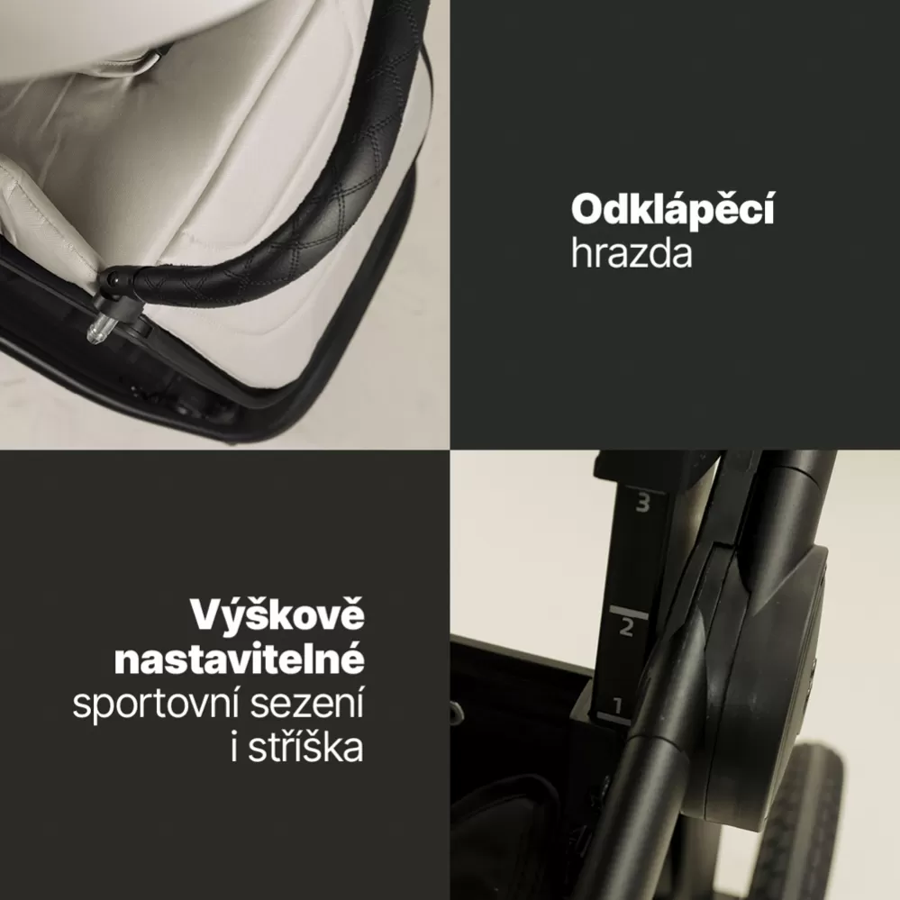 Výškově nastavitelné sezení i stříška (3 úrovně)