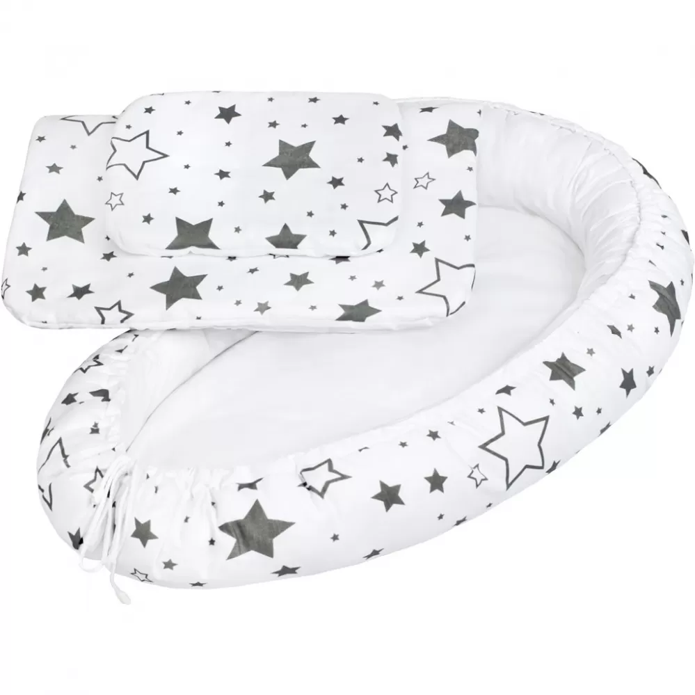 New Baby Luxusní hnízdečko s peřinkami pro miminko hvězdy šedé