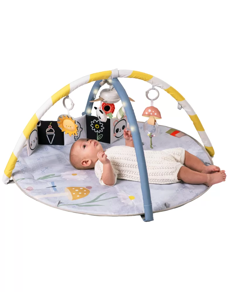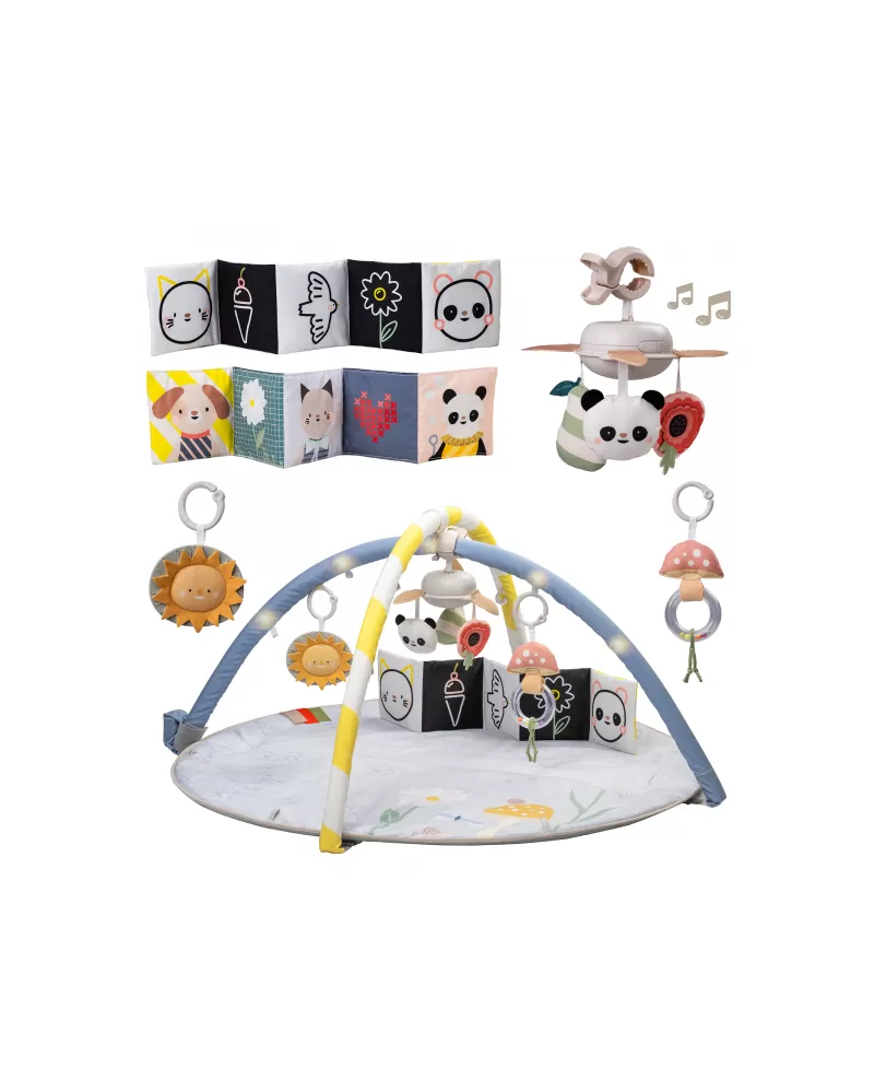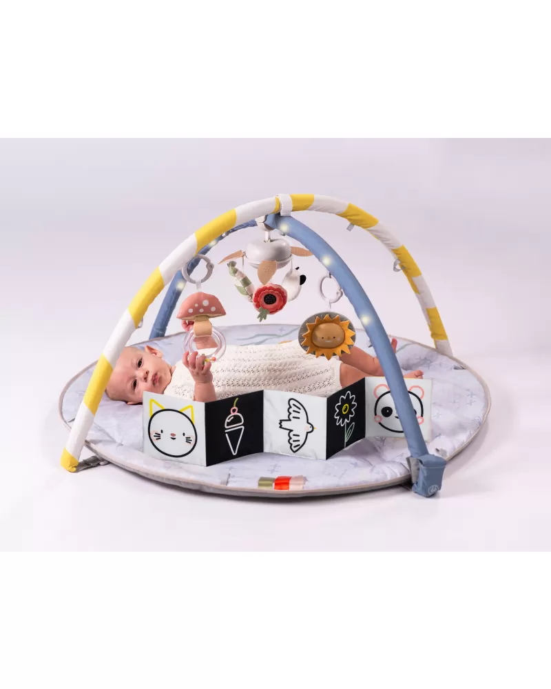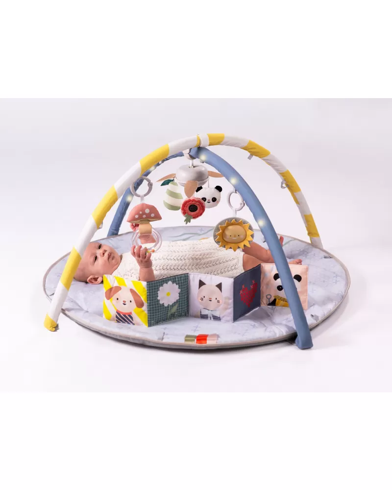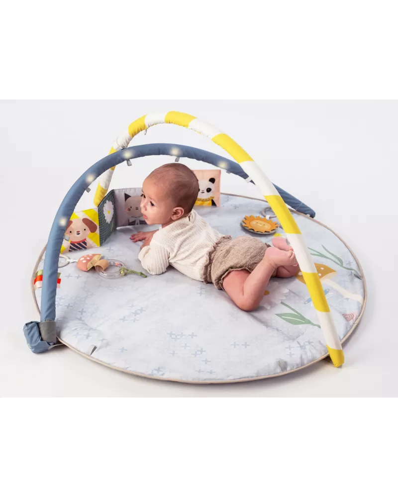 Interaktivní hrací deka Taf Toys s osvětlenou hrazdou, hudebním kolotočem a množstvím různorodých aktivit je dokonalým smyslovým hrištěm pro miminka. Podněcuje rozvoj jeho jednotlivých smyslů, motoriky a zvídavosti již od narození.