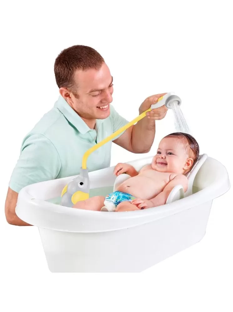 Kompaktní bateriová přenosná sprcha s jemným proudem je určena pro snadnou manipulaci při koupání dětí. Sprchová hlavice je ergonomicky navržena a aktivuje se stlačením oboustranného tlačítka, čímž umožňuje snadnou regulaci průtoku vody se zachováním konstantní teploty vody. V pozdější fázi je možné sprchu použít jako hračku do koupele.