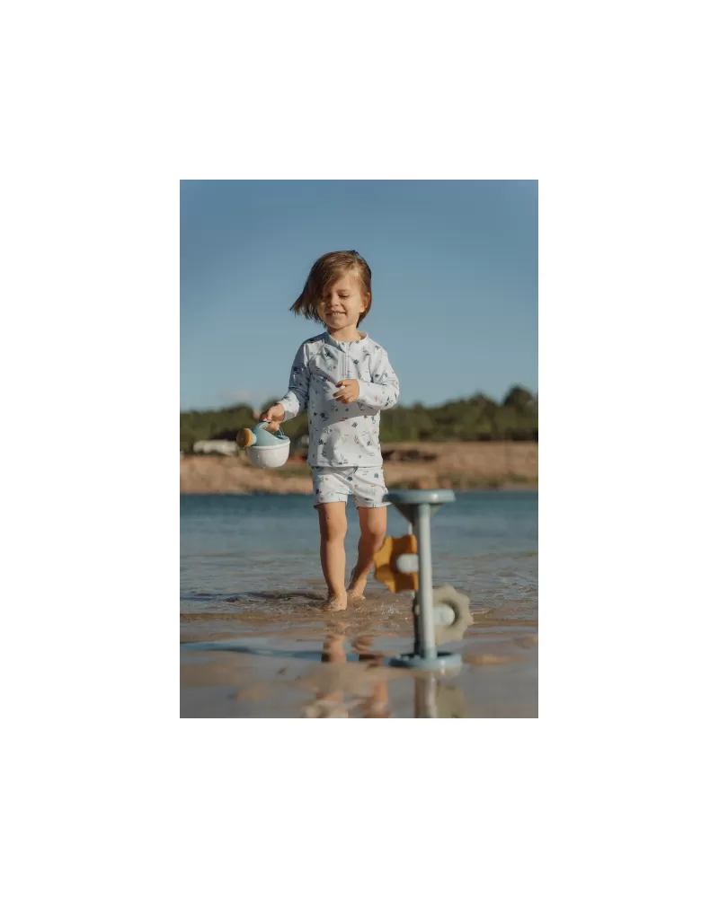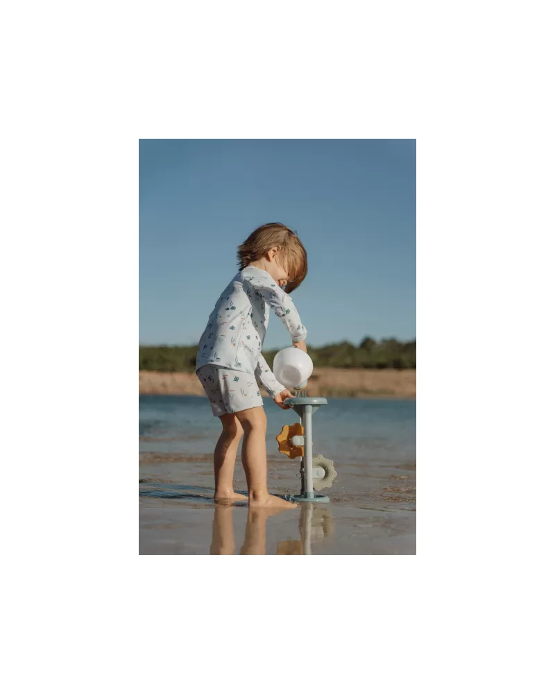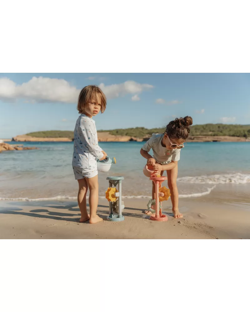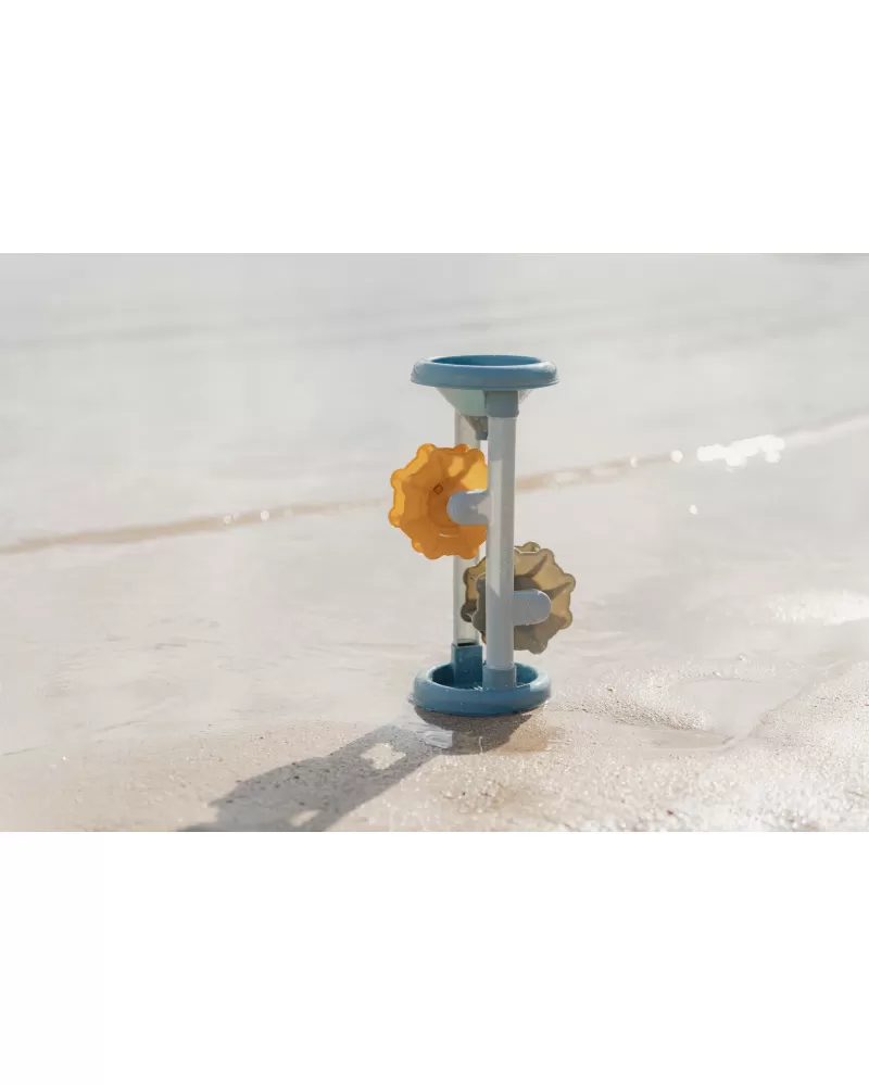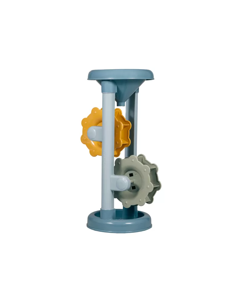 Hračka do vody i na písek, která vaše dítě zabaví na dlouhou dobu! Stačí do trychtýře v horní části nalít vodu nebo nasypat písek a pak už jen pozorovat, jak se mlýnská kola roztáčí.