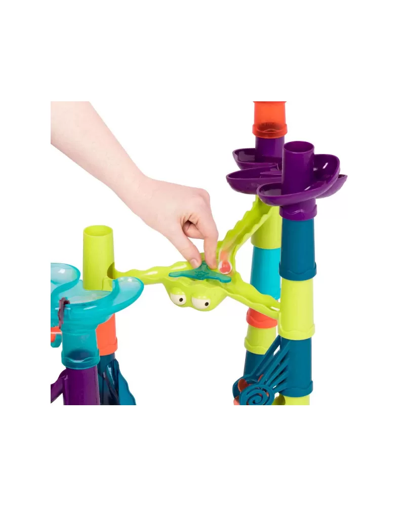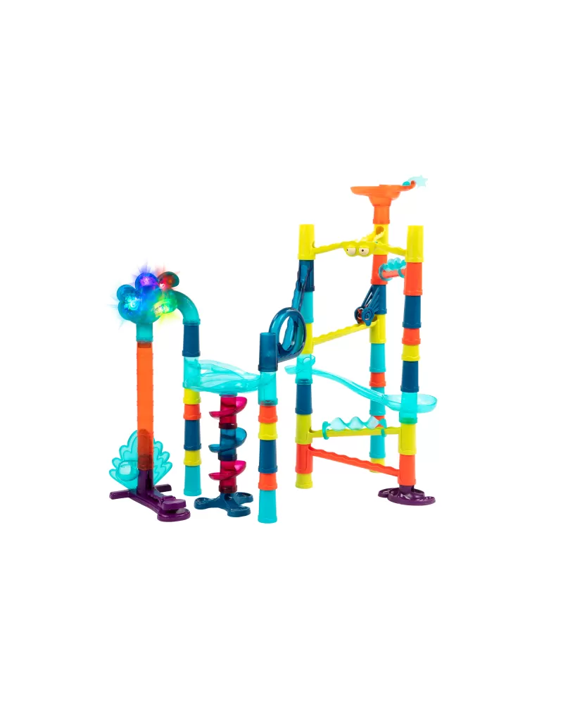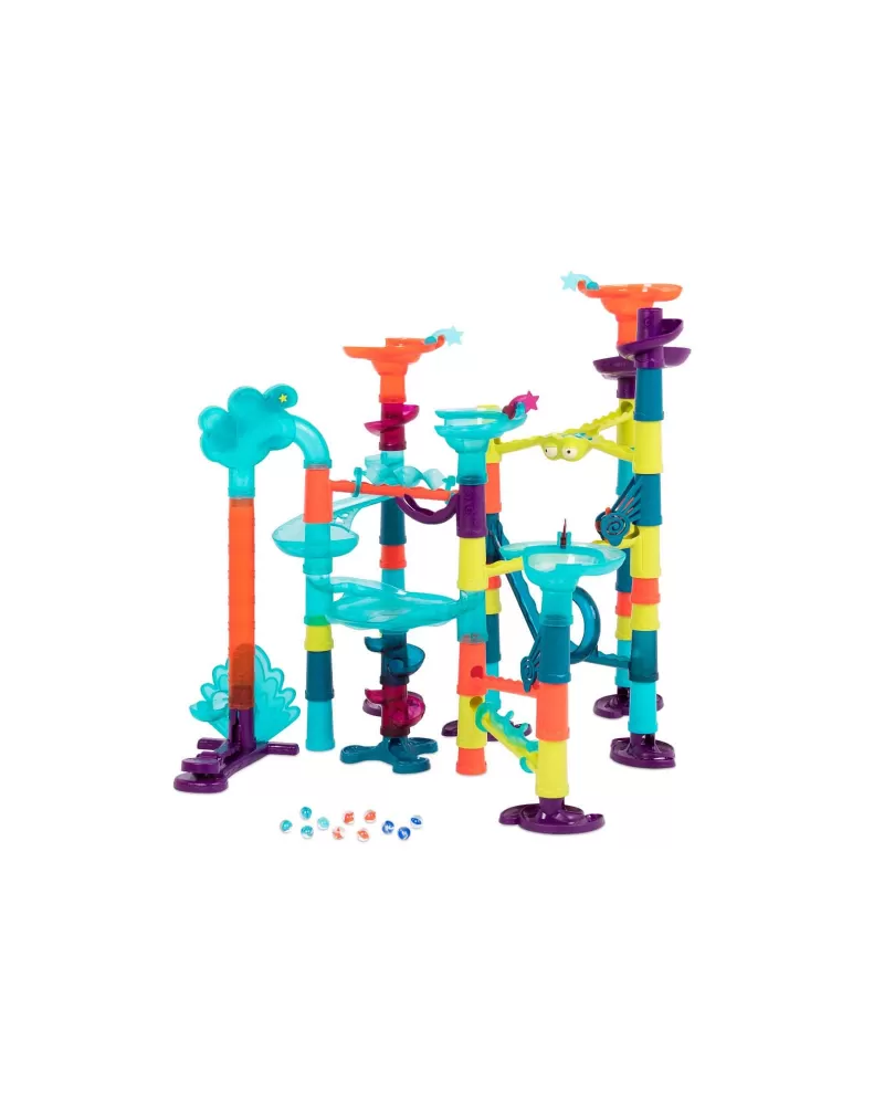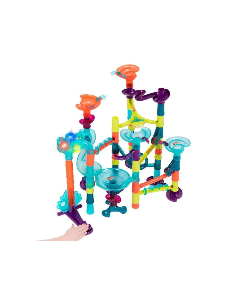 Maxi kuličková dráha nabízí nekonečnou variabilitu při stavění dráhy z barevných, odolných dílů. Postavte spolu s vašimi dětmi dráhu obsahující vysoké věže, kroutící se mosty i různorodé pohyblivé části a pak si užijte sledování pohybu kuliček celým bludištěm. Pro ještě větší efekt dráha obsahuje i díl s barevnými světýlky.