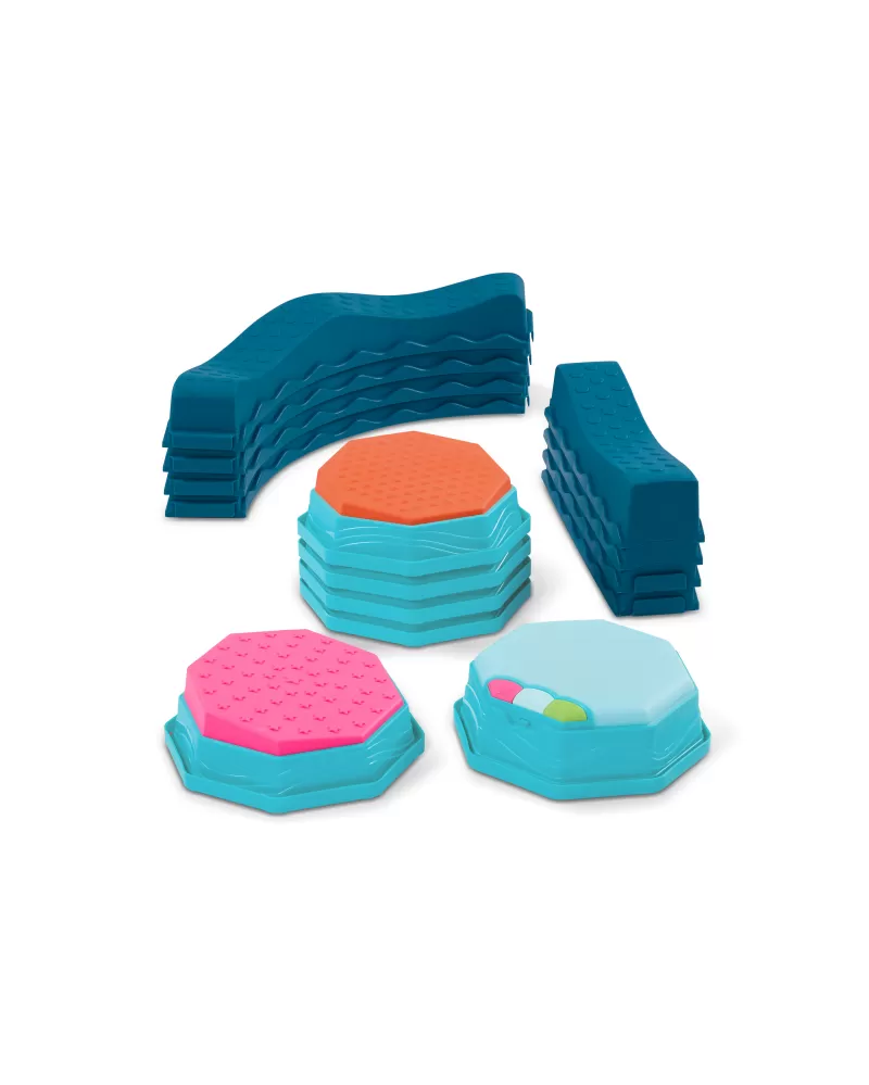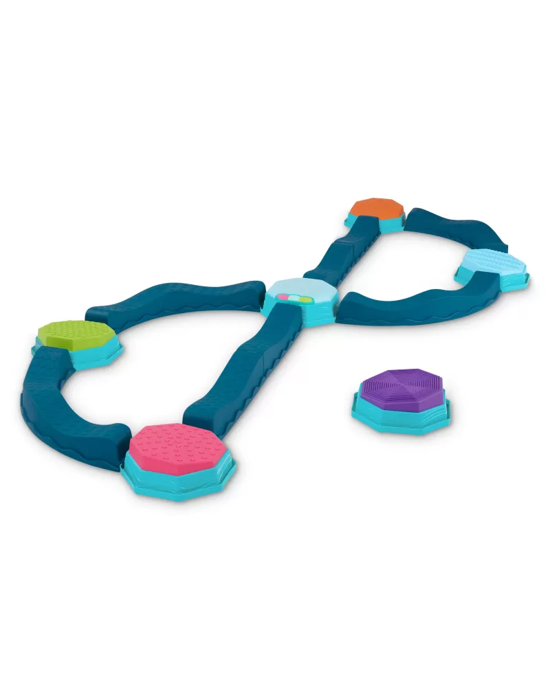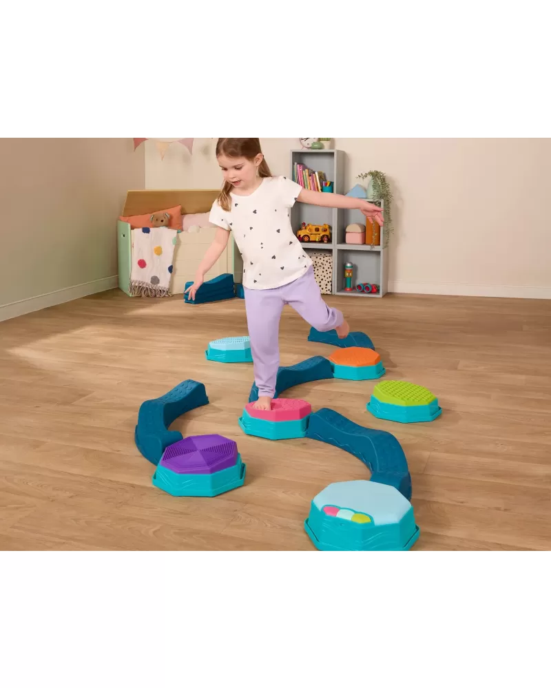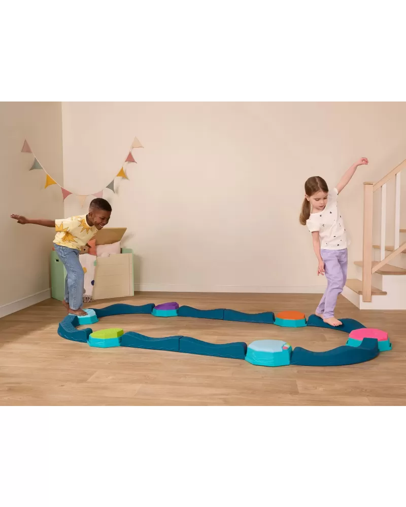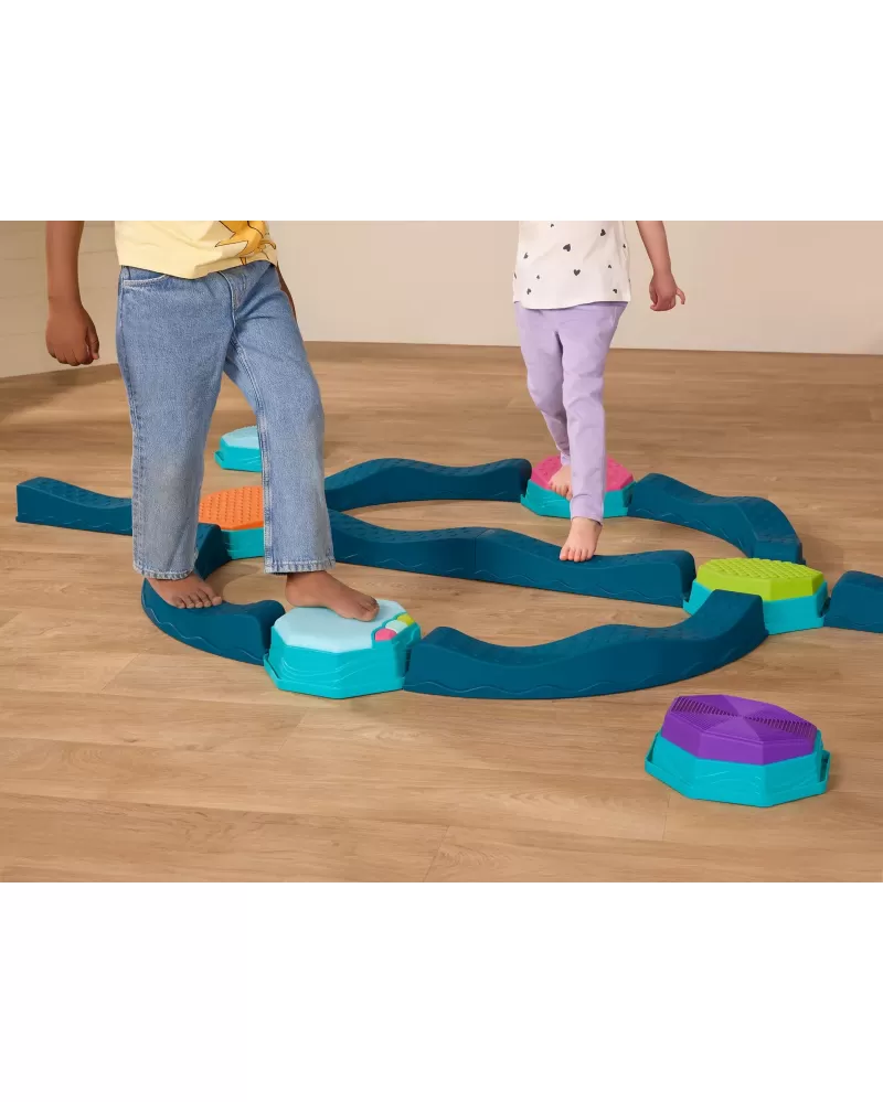 Variabilní překážková dráha Balance & Groove poskytne vašim dětem zábavu a zároveň pomáhá rozvíjet jejich rovnováhu, koordinaci a hrubou motoriku. Součástí sady je speciální hudební stupínek s LED světelnými efekty, který dodává celé dráze magický efekt a motivuje děti zkoušet další a další herní varianty. Sada nabízí mnoho kombinací a způsobů použití, takže pokaždé můžete vymyslet novou, zajímavou variantu. Každý kulatý stupínek navíc nabízí jinou texturu na horní barevné straně.