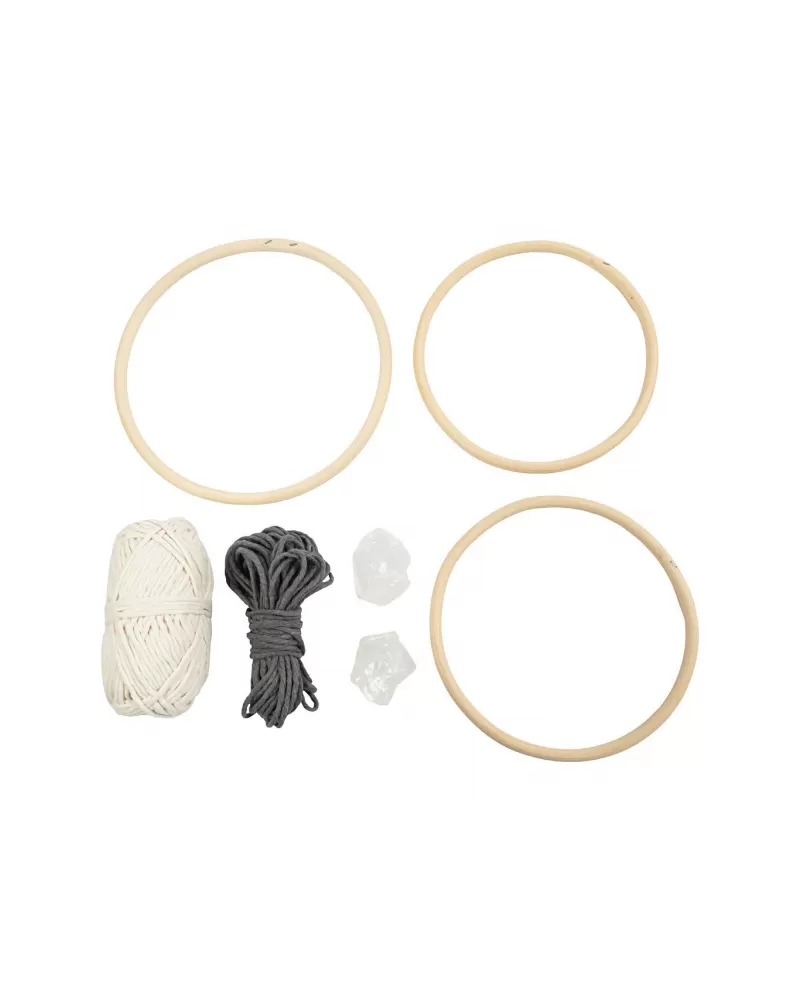 Vytvořte si makramé technikou elegantní závěsnou dekoraci, která bude nejen krásným doplňkem do interiéru, ale také nositelem pozitivní energie. Tato sada obsahuje přírodní křišťály, které v sobě nesou symboliku síly, jasnosti a klidu.