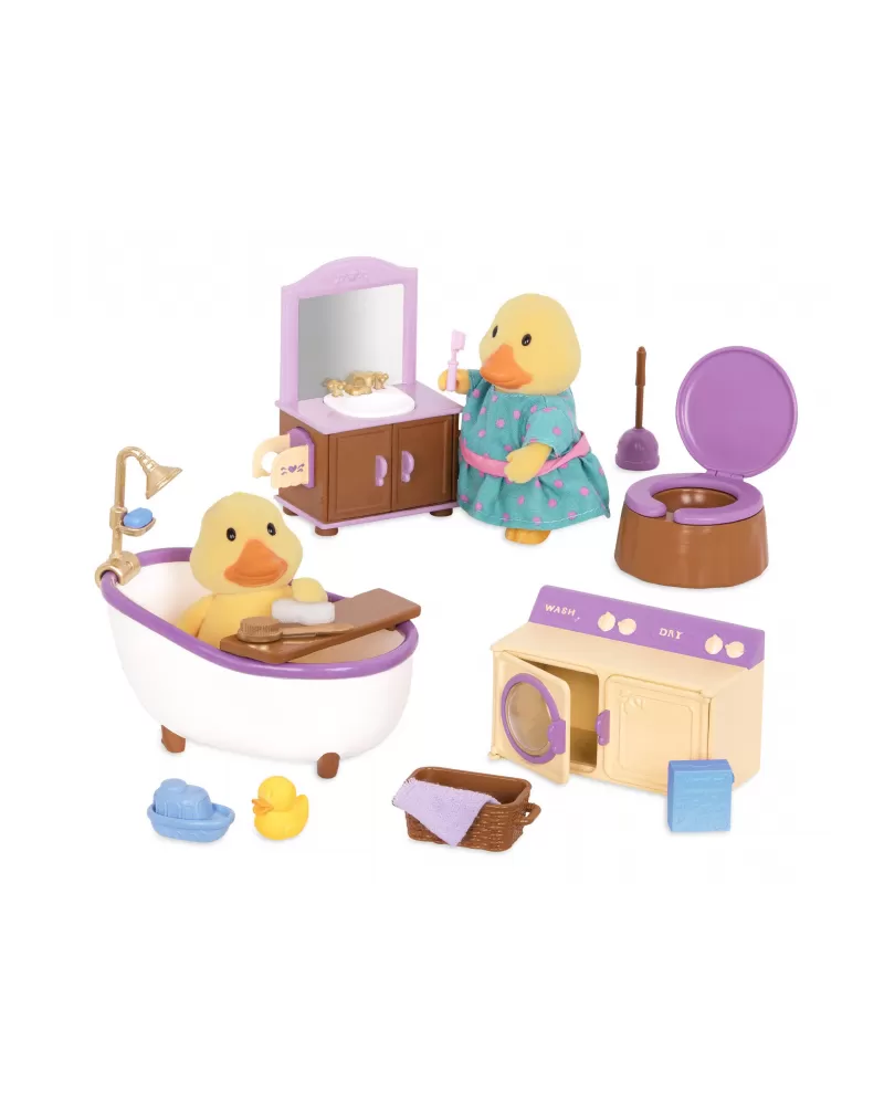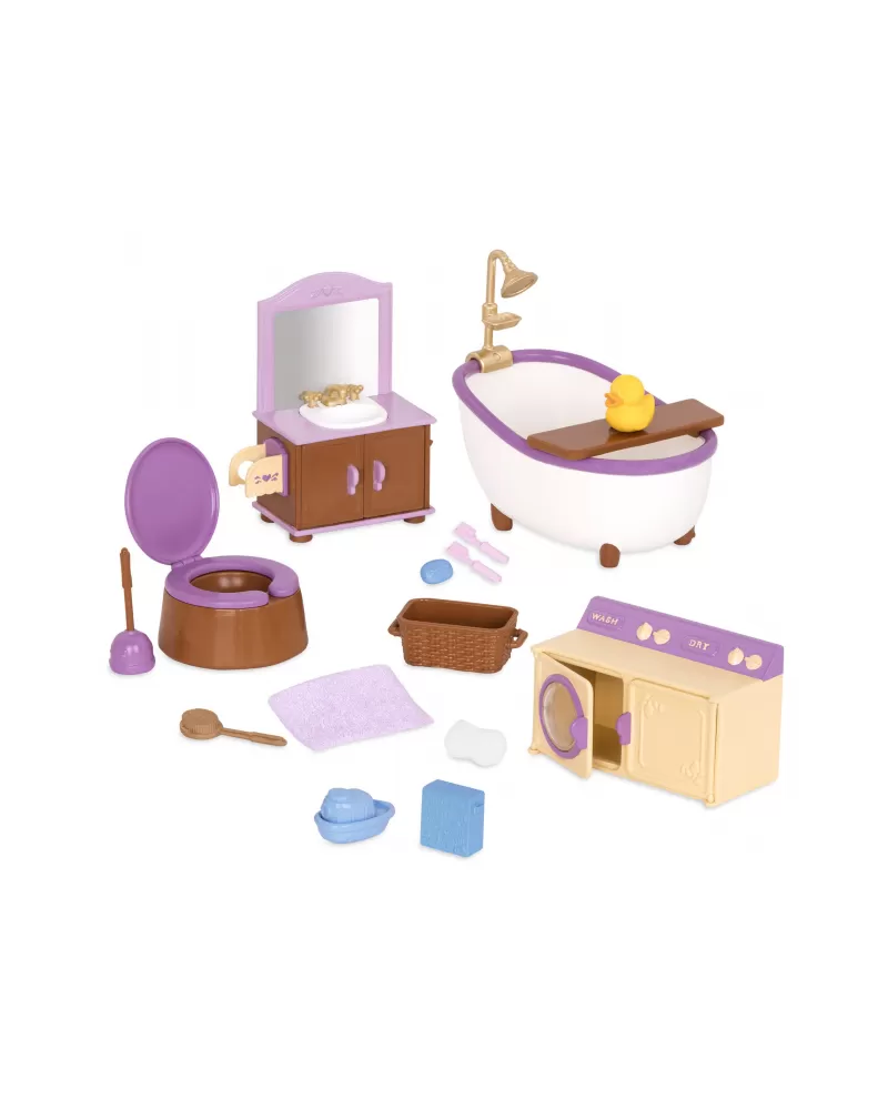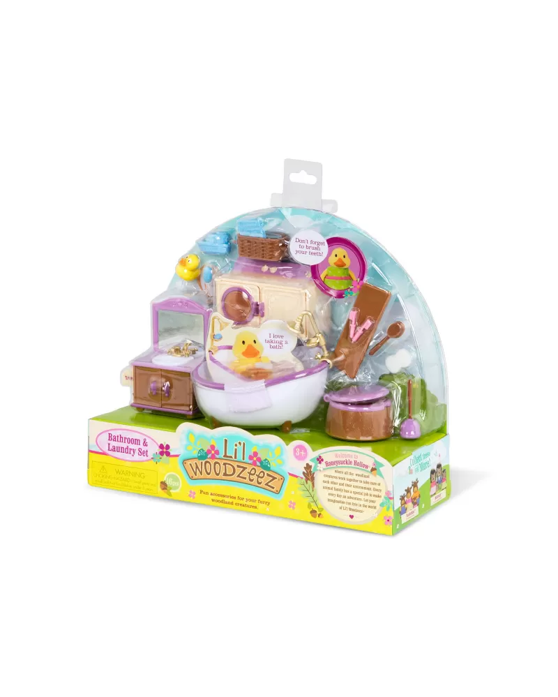 Sada nábytku vám umožní vybavit koupelnu v domečku pro postavičky zvířátek Li'l Woodzeez. Zvířátka si budou užívat voňavou koupel ve vaně a až bude potřeba vyprat, pračka i sušička jsou připravené! Domeček i postavičky zvířátek se prodávají samostatně.
