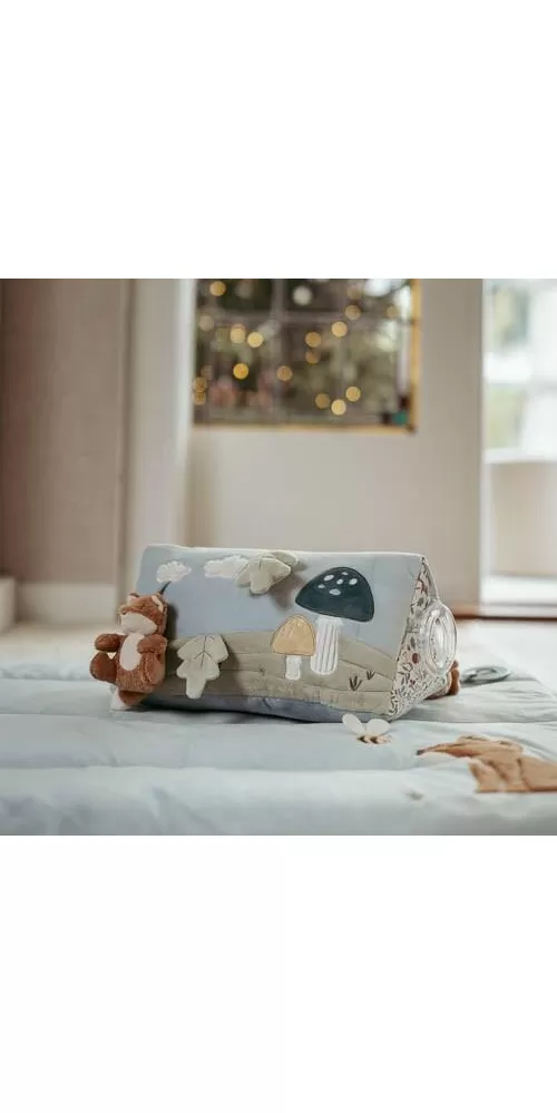 Polštářek z jemného, měkkého materiálu s krásnými motivy života v lese je speciálně navržený, aby podporoval hraní dítěte na bříšku. Hračky na polštářku i originální vyšívané aplikace lákají dítě ke zkoumání a pozorování. Každá strana polštářku je jiná, takže stačí polštářek otočit a nabídnout dítěti nové podněty k zabavení i rozvíjení jeho jednotlivých smyslů.