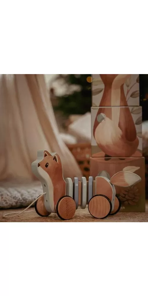 Liška na kolečkách v krásném dřevěném provedení má šňůrku, aby ji dítě mohlo tahat za sebou. Hračka je součástí designové kolekce hraček a doplňků… Celý popis