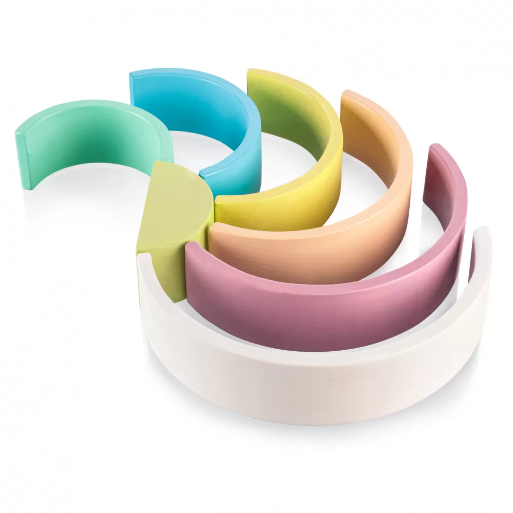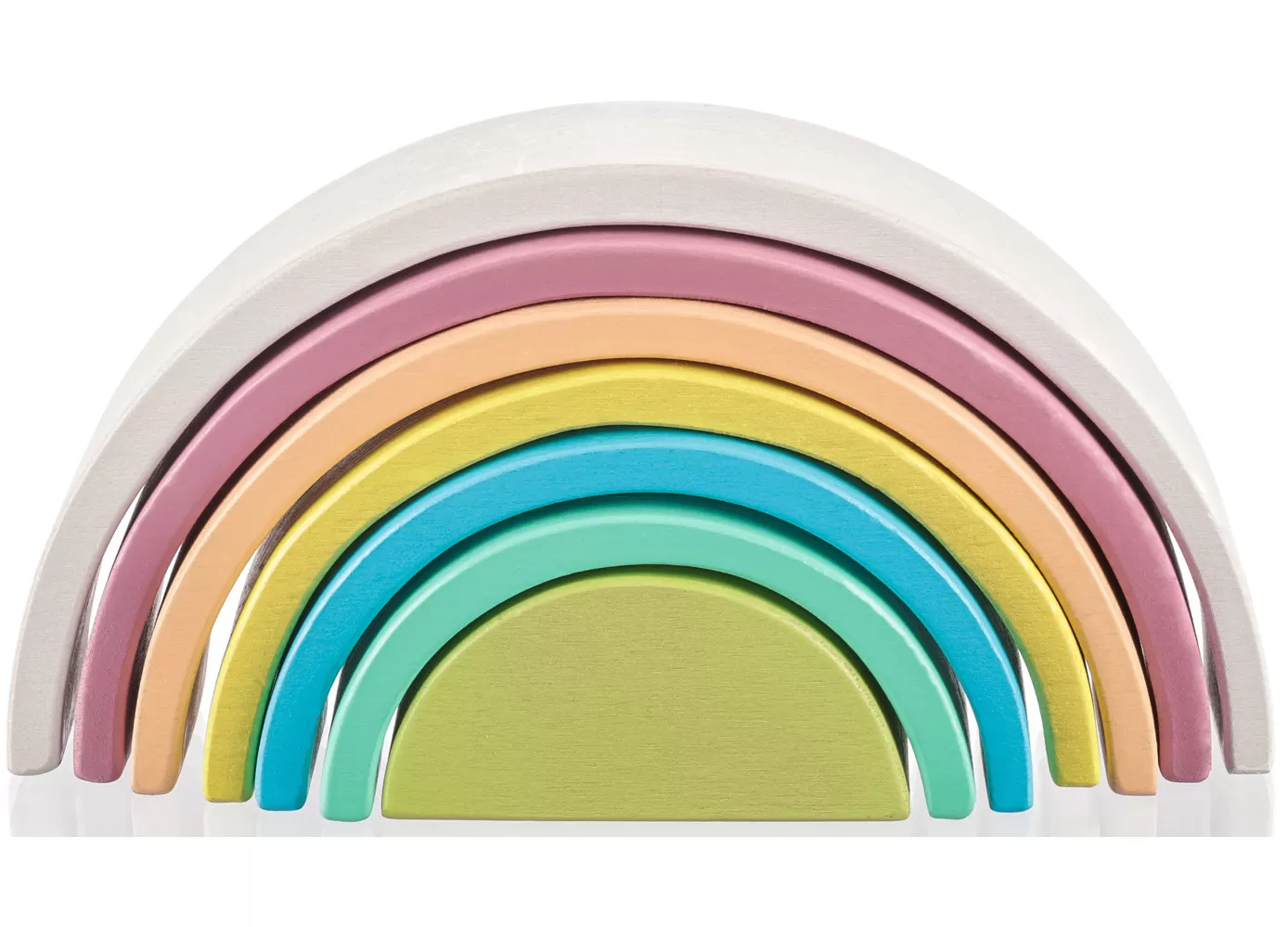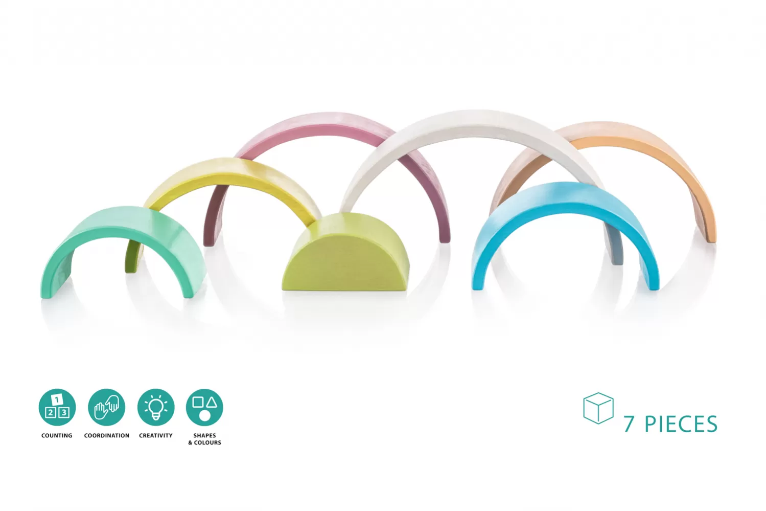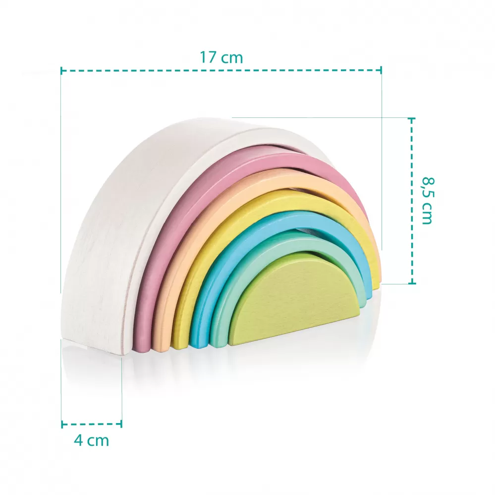 Učení by měla být zábava. Roztomilá hračka ve tvaru a barvách duhy je skvělým pomocníkem pro motorický rozvoj, představivost a kreativitu dětí.