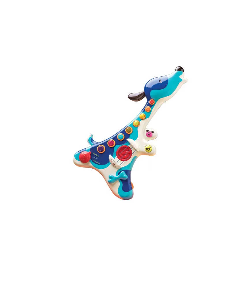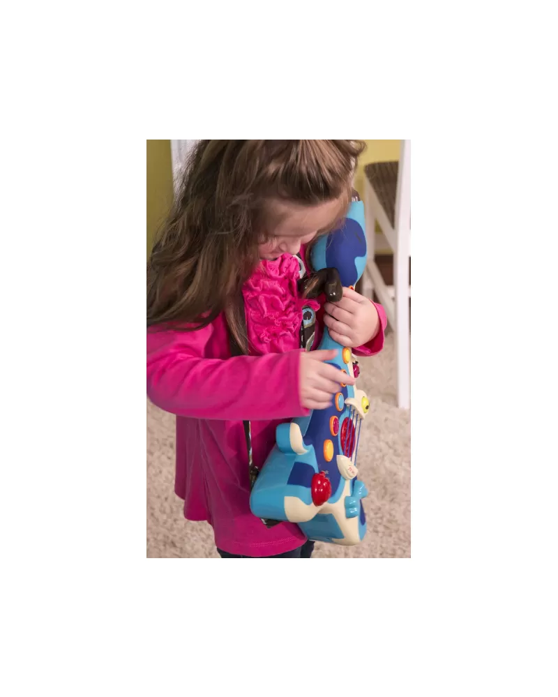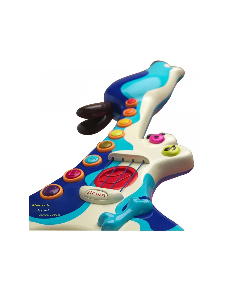 Elektronická kytara Btoys nabízí mnoho variant hraní a nastavení. Osm tlačítek skrývá osm hudebních akordů, nahraných profesionálně ve studiu. Brnkáním na struny zahrajete jednu z 20 známých melodií. Tři hudební nastavení: elektrické, akustické nebo vyjící pes. Kytara nabízí celkem 29 melodií, možnost nastavení hlasitosti a automatické vypnutí po 2 minutách.