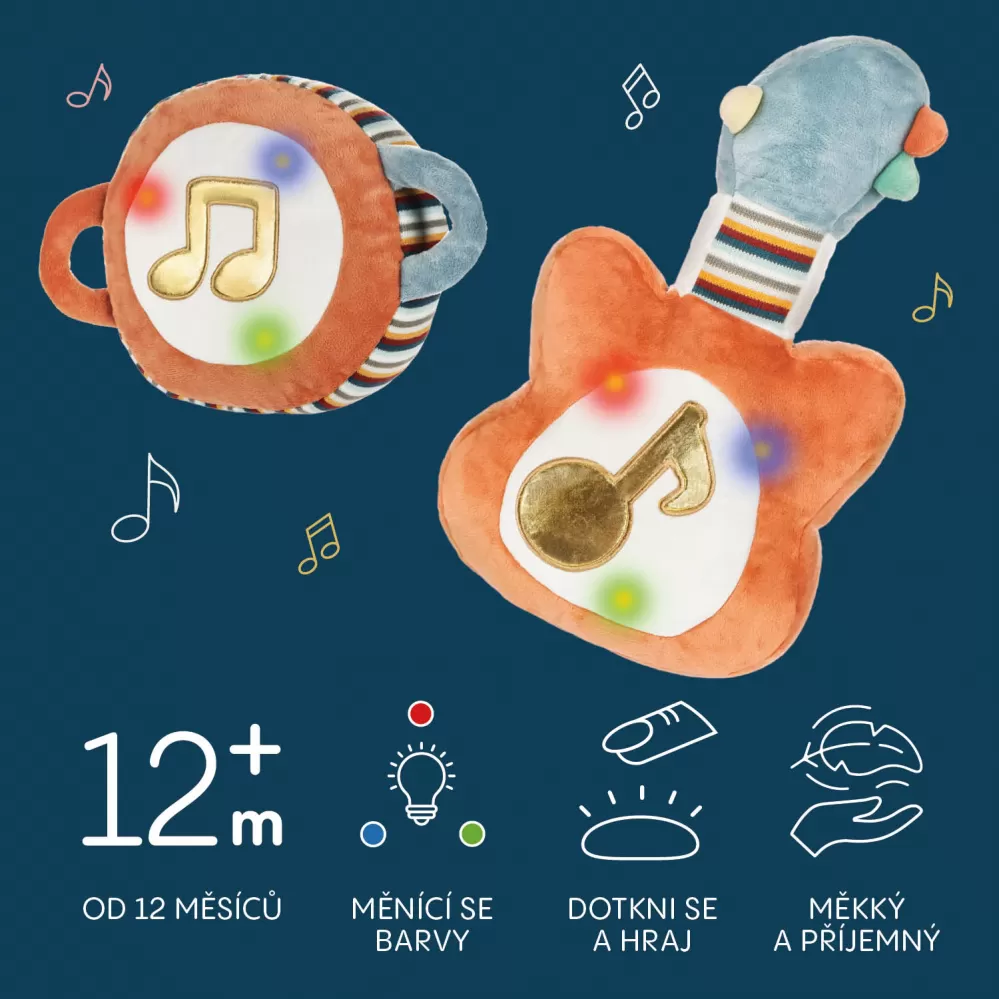 Objevte kouzlo hudby a rytmu s tímto interaktivním plyšovým nástrojem! Stačí lehké poklepání a rozezní se 16 veselých melodií. A to je teprve začátek! V interaktivním režimu se z vašeho drobečka stává malý skladatel. Poklepáváním během přehrávání melodií se zapojí bubnování, které se přizpůsobí tempu doteků. Tento hravý prvek přirozeně rozvíjí cit pro rytmus a zdokonaluje motorické dovednosti.