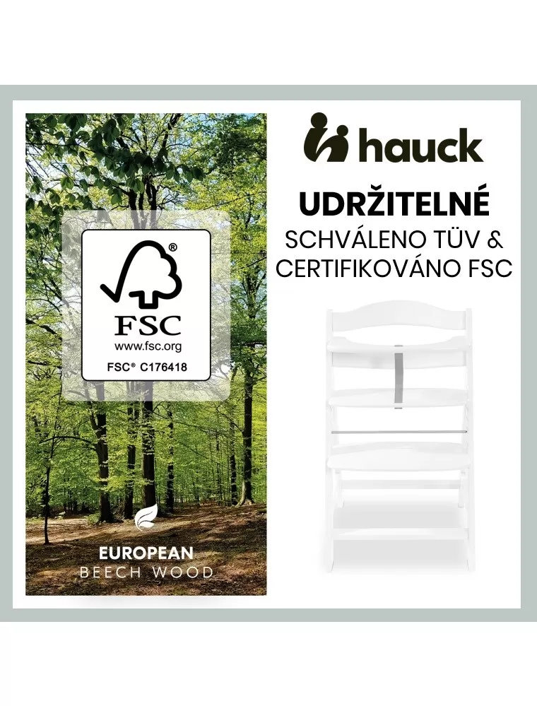 Udržitelný životní styl // Naše židlička ALPHA+ je pravý přírodní produkt z dorůstajícího evropského bukového dřeva. Hauck tak přispívá k ochraně životního prostředí a již dnes pomýšlí na příští generaci rodičů.