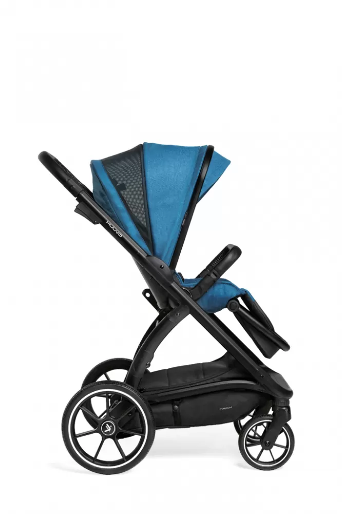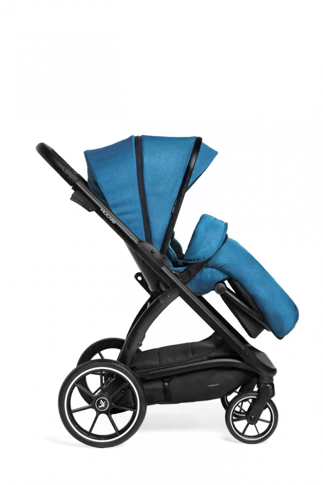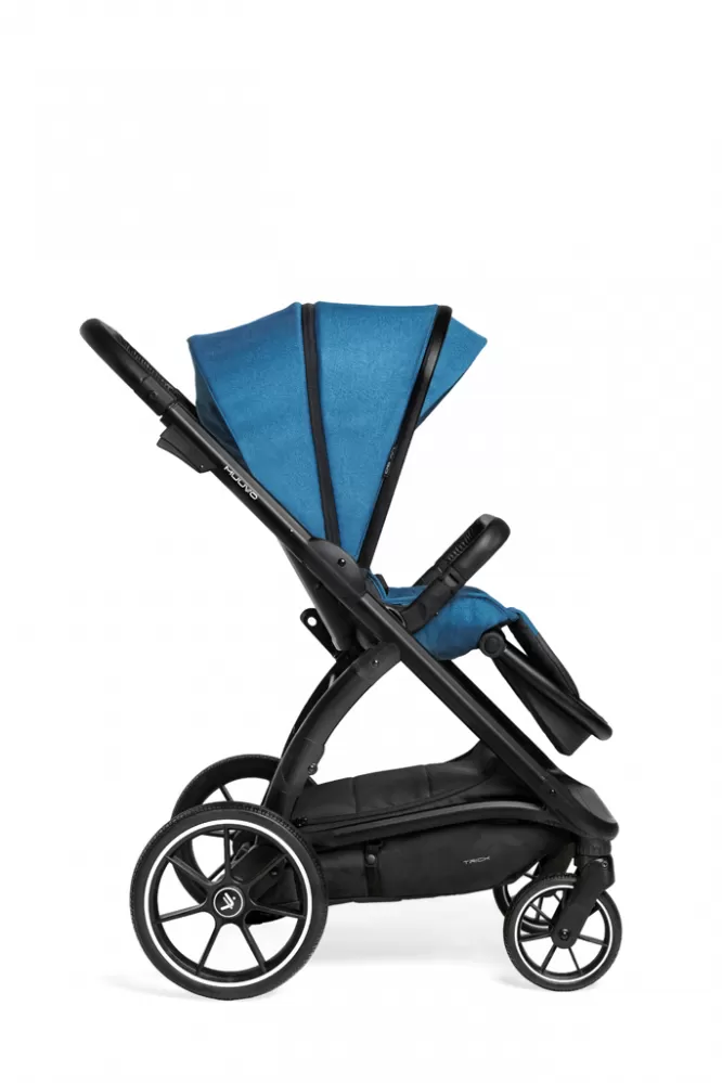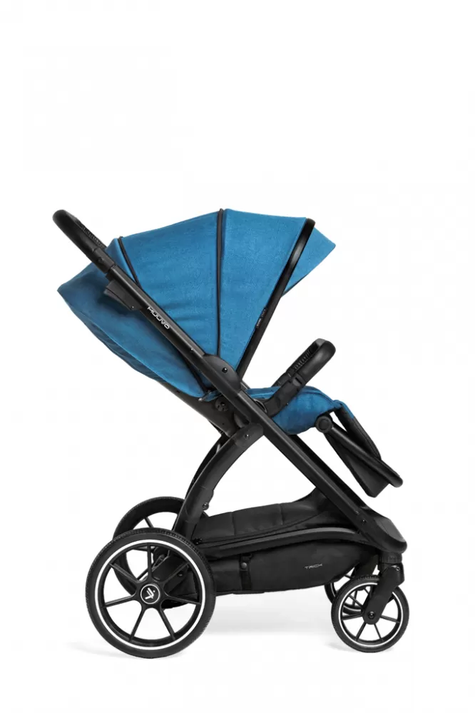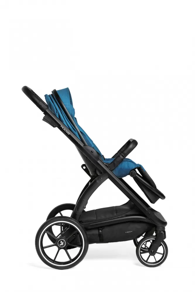 Trick je lehký a extrémně obratný kočárek 2 v 1. Nejvyšší jízdní komfort zajišťuje dobře profilované, prostorné sedátko kočárku, velmi dobré tlumení nárazů a nastavitelná opěrka nohou.