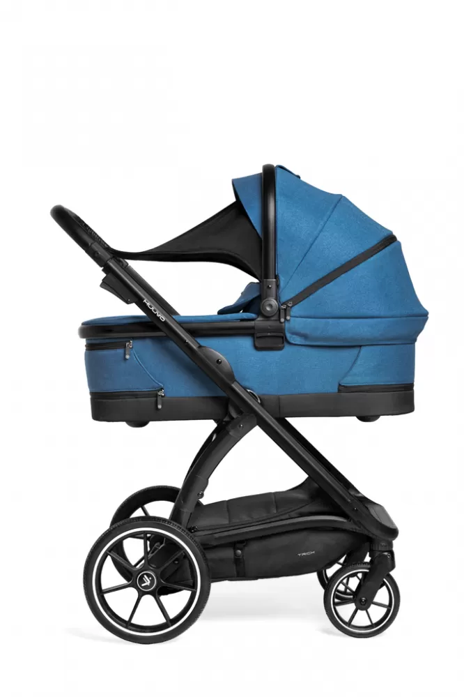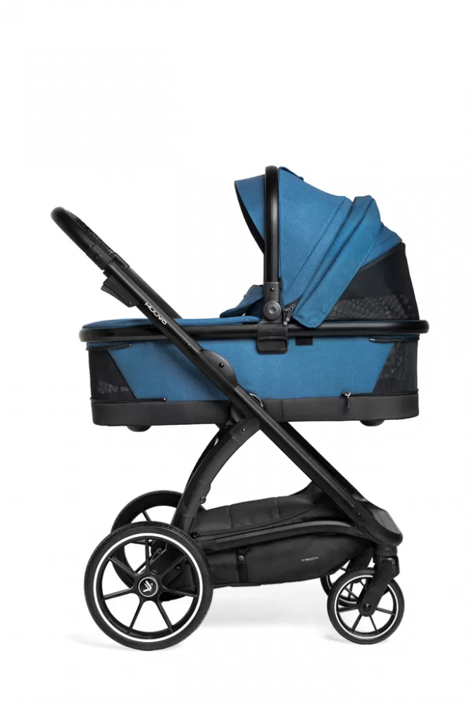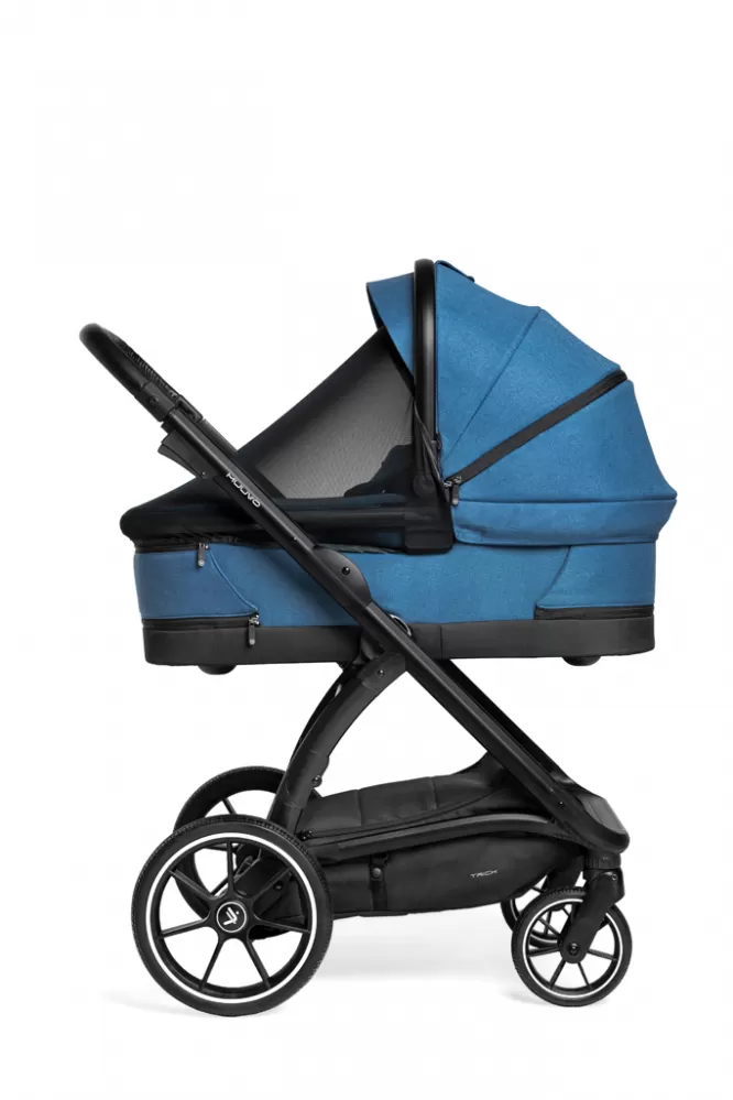 Trick je lehký a extrémně obratný kočárek 2 v 1. Prostorná korbička ke kočárku Trick má celou řadu funkcí, které poskytují plnou ochranu před měnícími se povětrnostními podmínkami, mimo jiné 3D Airflow ventilaci, všitou moskytiéru a prodlužitelnou stříšku. V nejteplejších dnech je také možné zcela odejmout ventilační panely a poskytnout tak miminku svěží vánek. Nánožník poskytuje další ochranu miminka před nepříjemným počasím v chladném období.