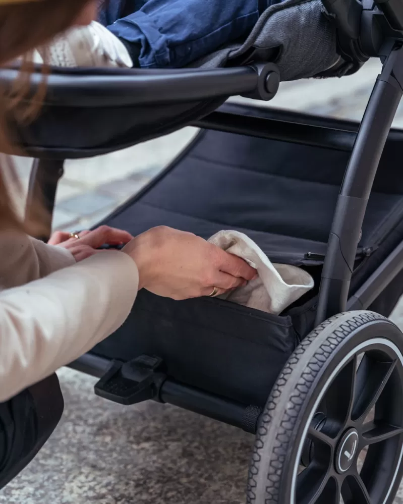 Při navrhování Tricku jsme nezapomněli ani na pohodlí rodičů zajištěné nastavitelnou rukojetí, pohodlnou taškou, lehkou konstrukcí, brzdou šetrnou k botám a držákem na pohár, který je součástí sady. Trick je navíc vybaven prostorným, uzavřeným košem, do kterého se vejdou všechny vaše věci, jako jsou potraviny nebo další přikrývky atd.