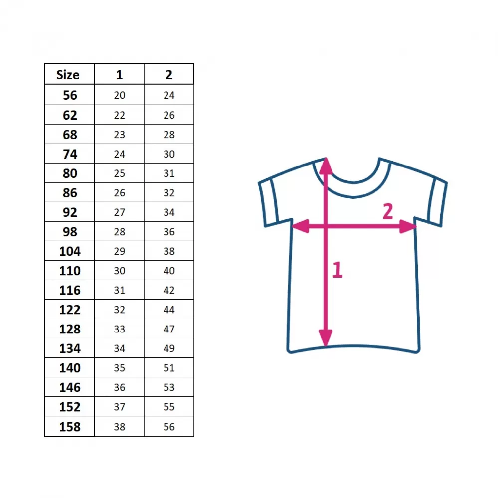Praktické a kvalitní bavlněné tričko s krátkým rukávem české značky New Baby Kindergarten. Bavlněné tričko je velmi pohodlné už jen tím, že je vyrobeno z kvalitní bavlny, bez zapínání, s jemným lemem okolo krčku. Lem nesmí tlačit, obepínat a tričko se musí snadno oblékat přes hlavičku. Tričko je velmi vhodné na běžné dětské činnosti na doma a do školky. Složení: 100% bavlna. OEKO-TEX STANDARD 100. Rozměrová tabulka-poslední foto.