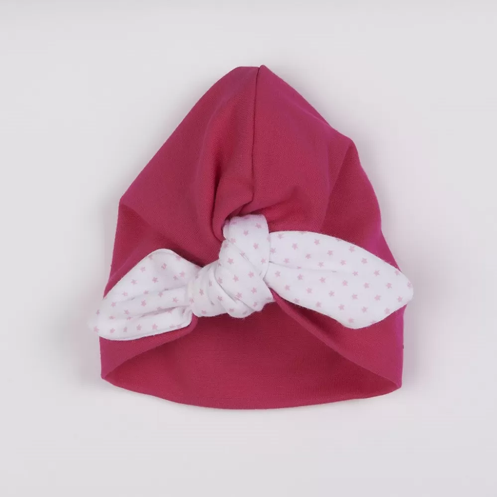 Čepička české značky New Baby For Girls je ušitá ve stylu turbanu. Skvělá vychytávka, kterou lze využít jako krásný doplněk, nebo jako praktický kousek oblečení. Turban zdobí krásný stylový uzel, který dodá čepičce ten správný šmrnc. Ušitá z dvojité látky a tím jsou více chráněny ouška před větrem. Příjemná na dotek a krásně sedí na hlavičce. Materiál: 100% bavlna.