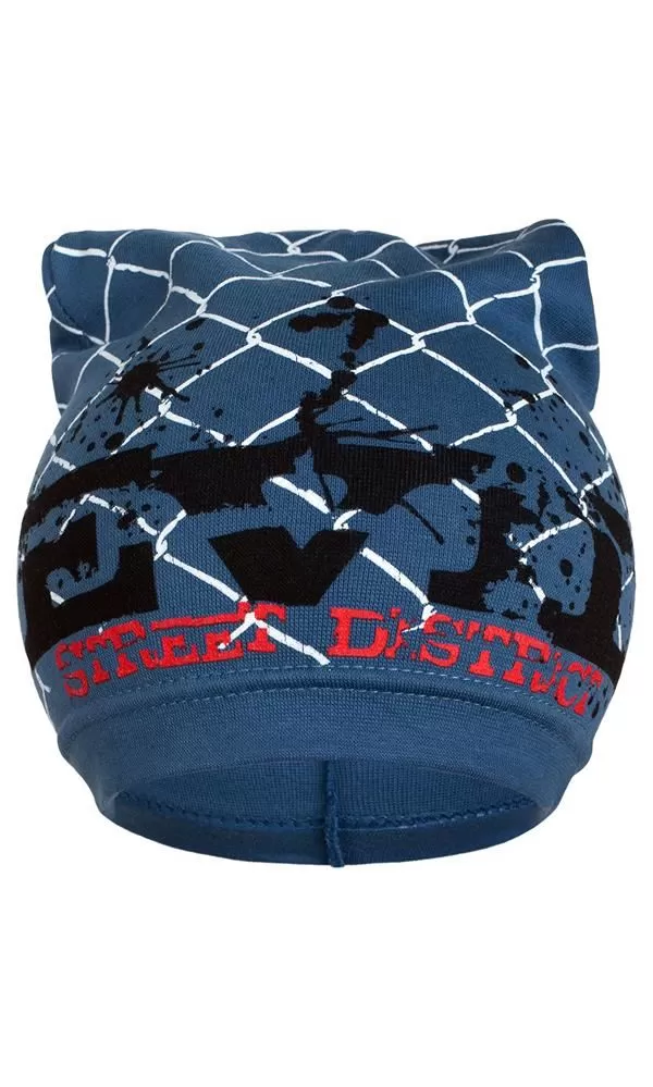 Jarní bavlněná čepička New Baby. Čepičku zdobí nápis Evil street district. Čepička je ušitá z prodyšného materiálu, proto je vhodná pro jarní i podzimní dny. Složení: 100% bavlna. Materiál je pružný. Obvod kolem hlavičky cca 40-50 cm.
