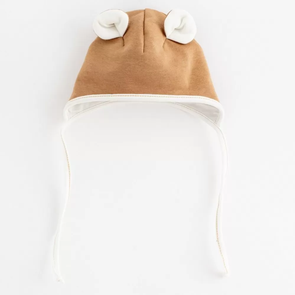 New Baby Jarní kojenecká čepička s šátkem na krk Sebastian New Baby Sebastian Hnědá