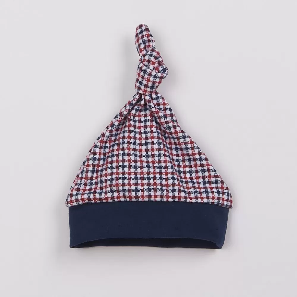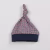 Kojenecká čepička české značky New Baby Checkered. Čepička je celopotištěná znovu moderním kostkovaným vzorem a zdobena roztomilým uzlíkem v horní části. Lem je jednobarevný, široký a netlačí na hlavičku miminka. Materiál: 100% bavlna.