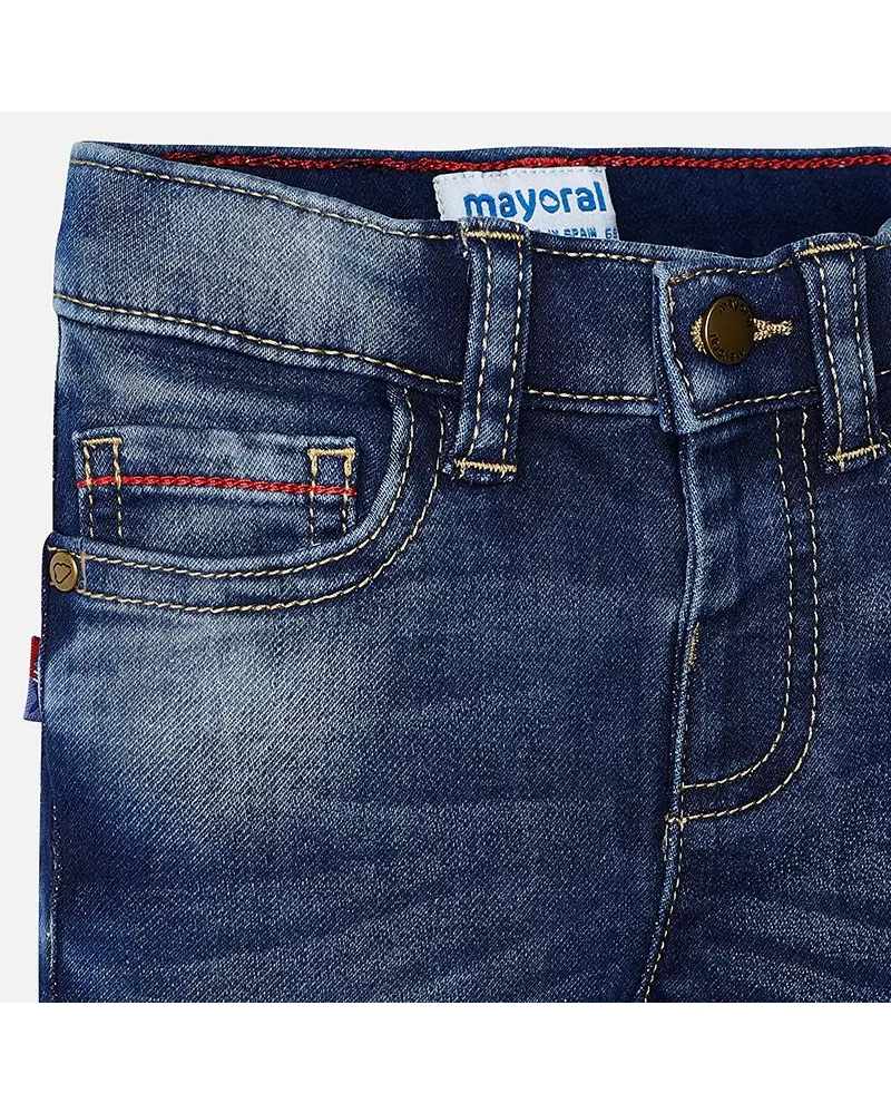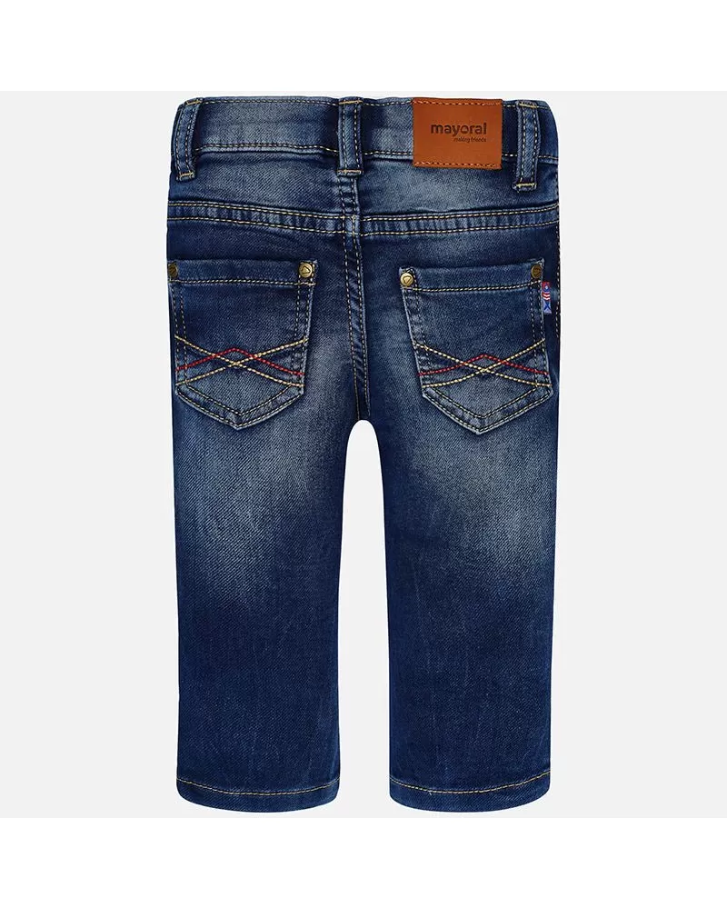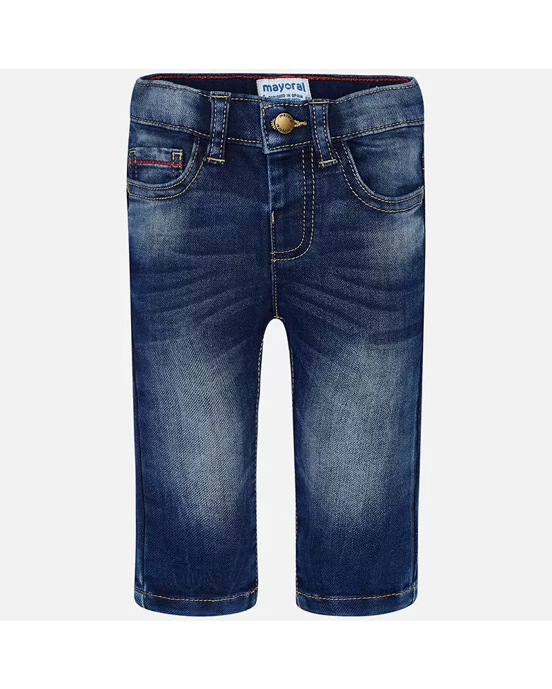 Krásné dlouhé JEANS kalhoty pro chlapečka od kvalitní španělské značky MAYORAL. Elegantní kalhoty z měkké jeans s nastavitelným pasem a ozdobným prošitím zadních kapes.