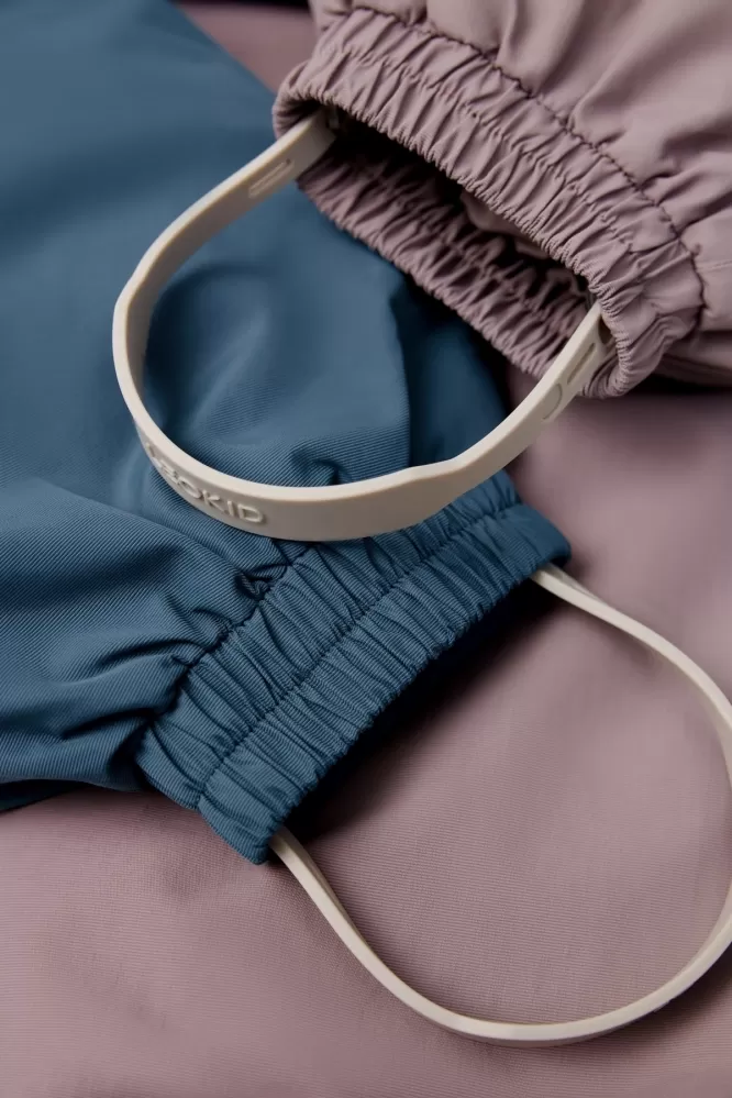 • doplňky: plastový zip s kovovým jezdcem, kovové patentky s plastovými krytkami, silikonová nášivka s logem Leokid, elastické polyesterové šle, plastové knoflíky a silikonové nánožníky.