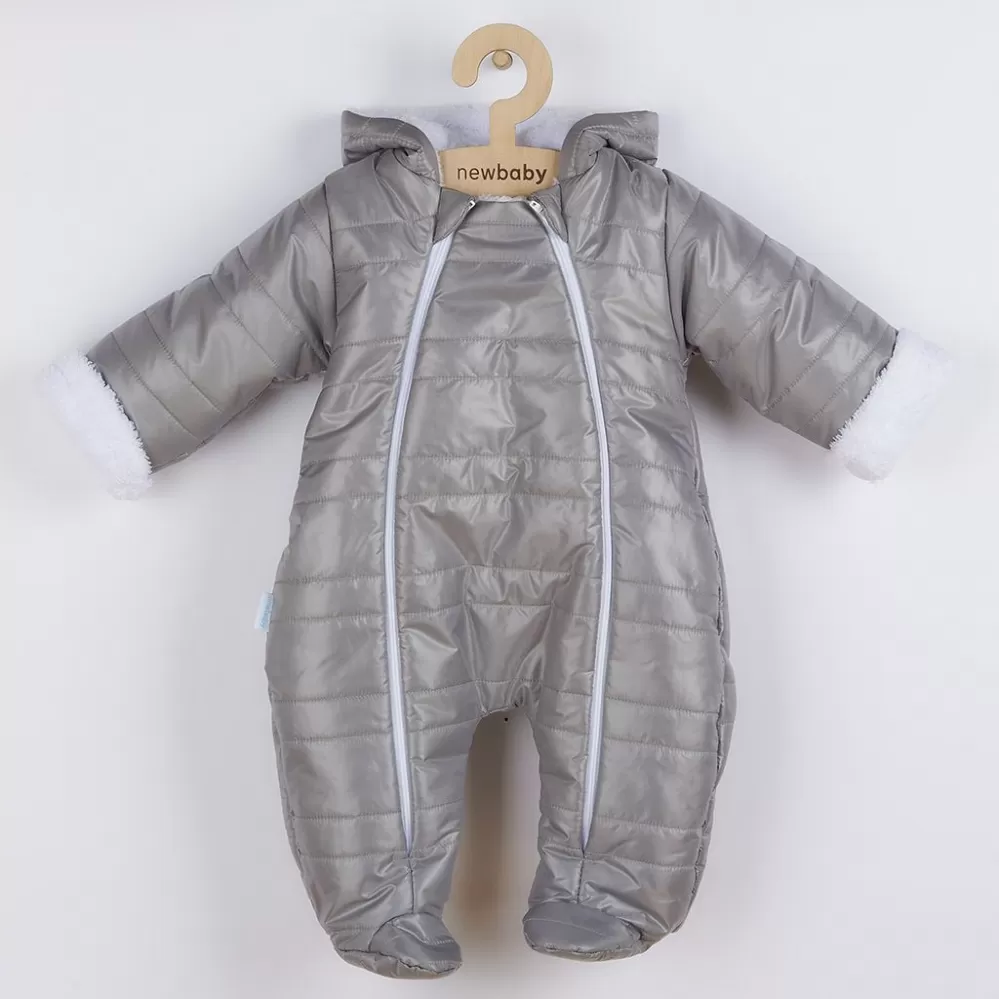 New Baby Zimní kojenecká kombinéza s kapucí a oušky Pumi grey New Baby Pumi Šedá